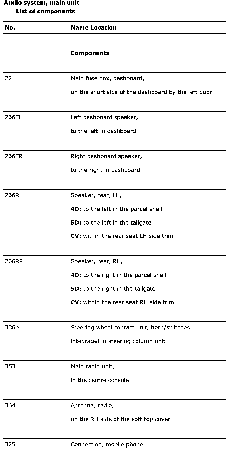 Audio System, Main Unit: