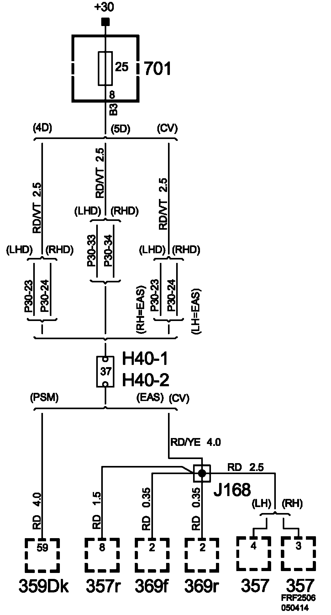 Fuse 25, Boot Electrical Centre 701: