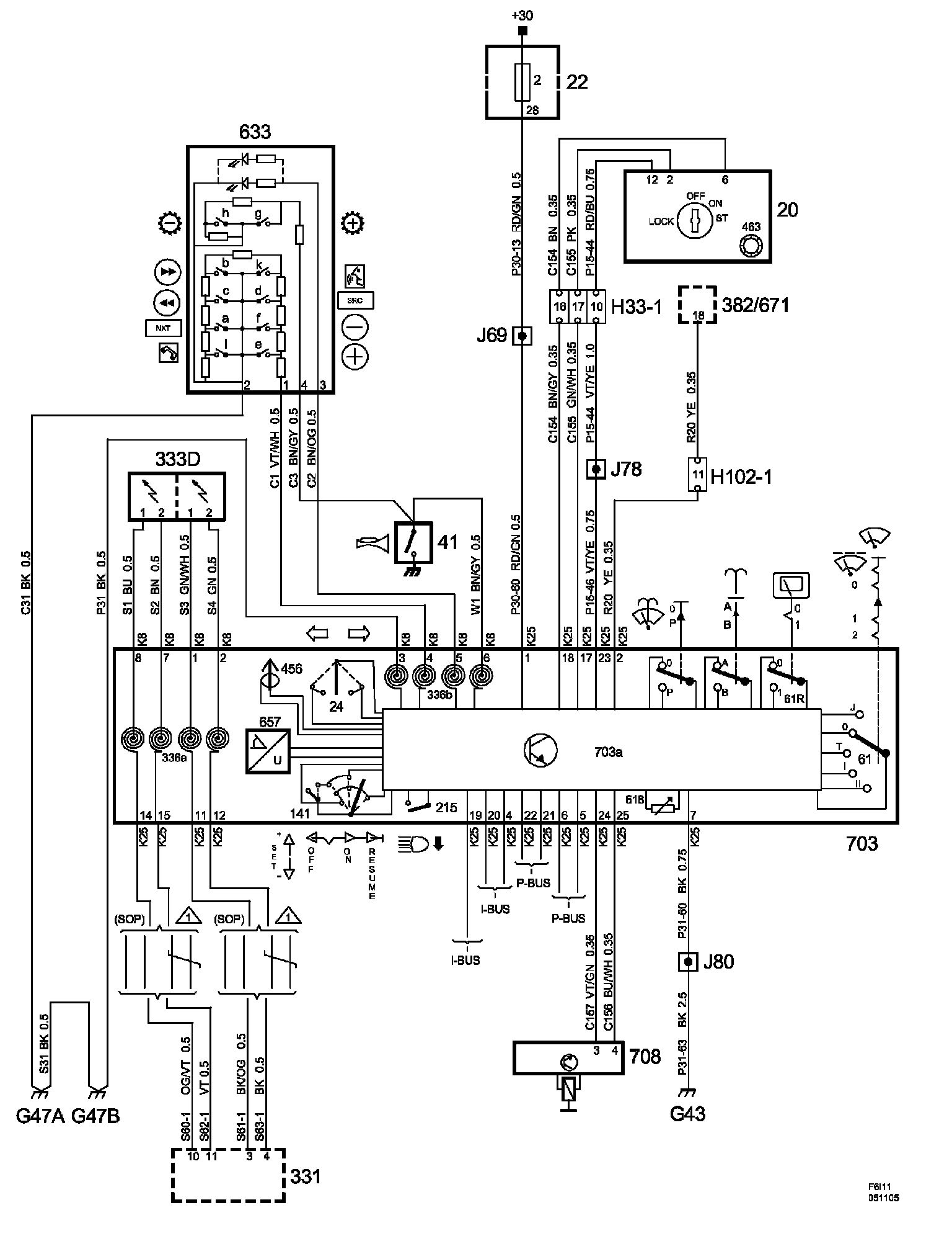 Power Supply Diagrams: The diagrams for the power supplies that may be feeding this system (+30, +15, +54, +X, and +B) can be found at Power and Ground Distribution diagrams. Electrical Diagrams