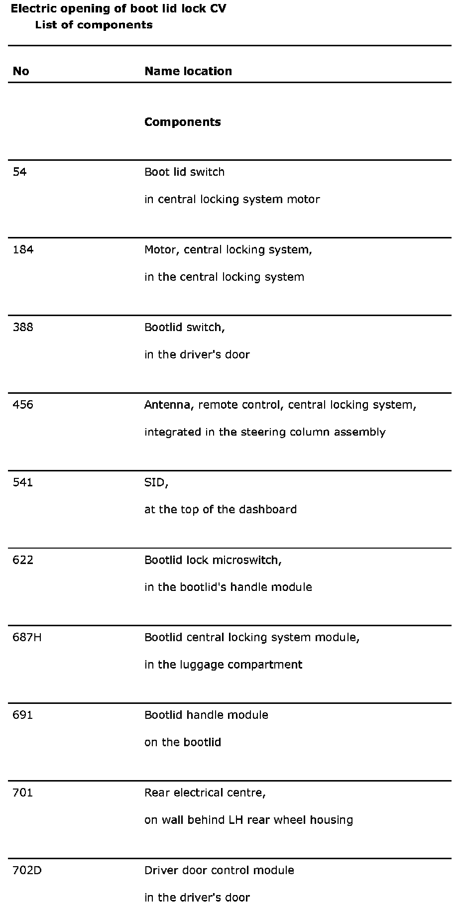 Electric Opening of Boot Lid Lock CV