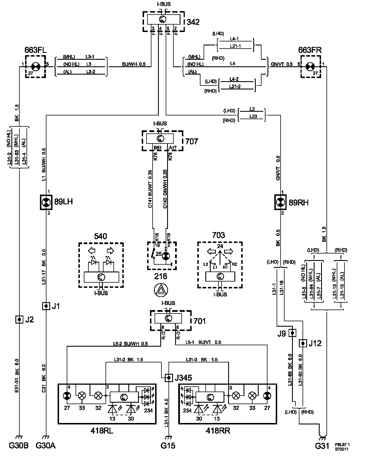 Power Supply Diagrams: The diagrams for the power supplies that may be feeding this system (+30, +15, +54, +X, and +B) can be found at Power and Ground Distribution diagrams. Electrical Diagrams