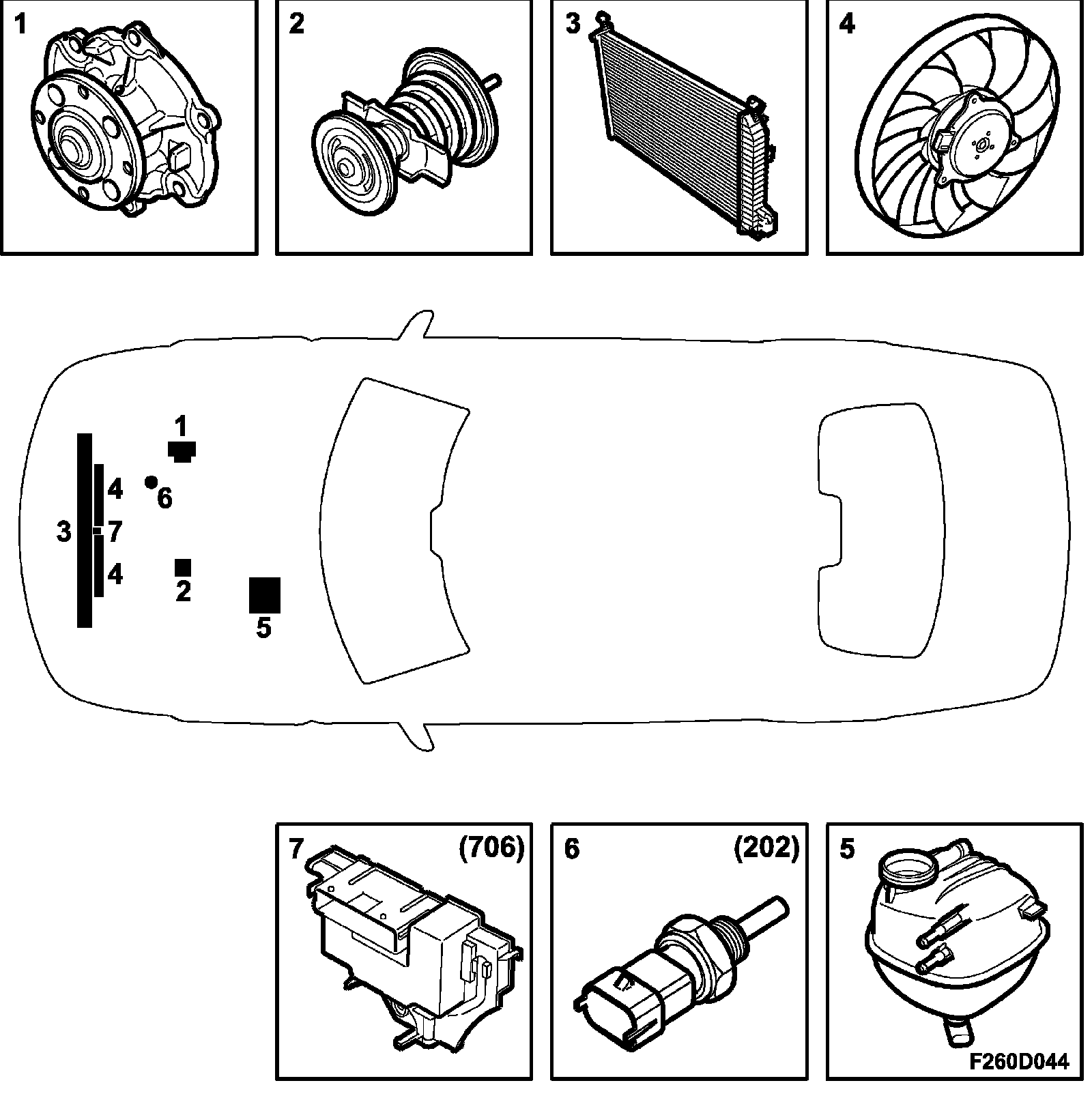 7. Radiator fan relay unit (706)