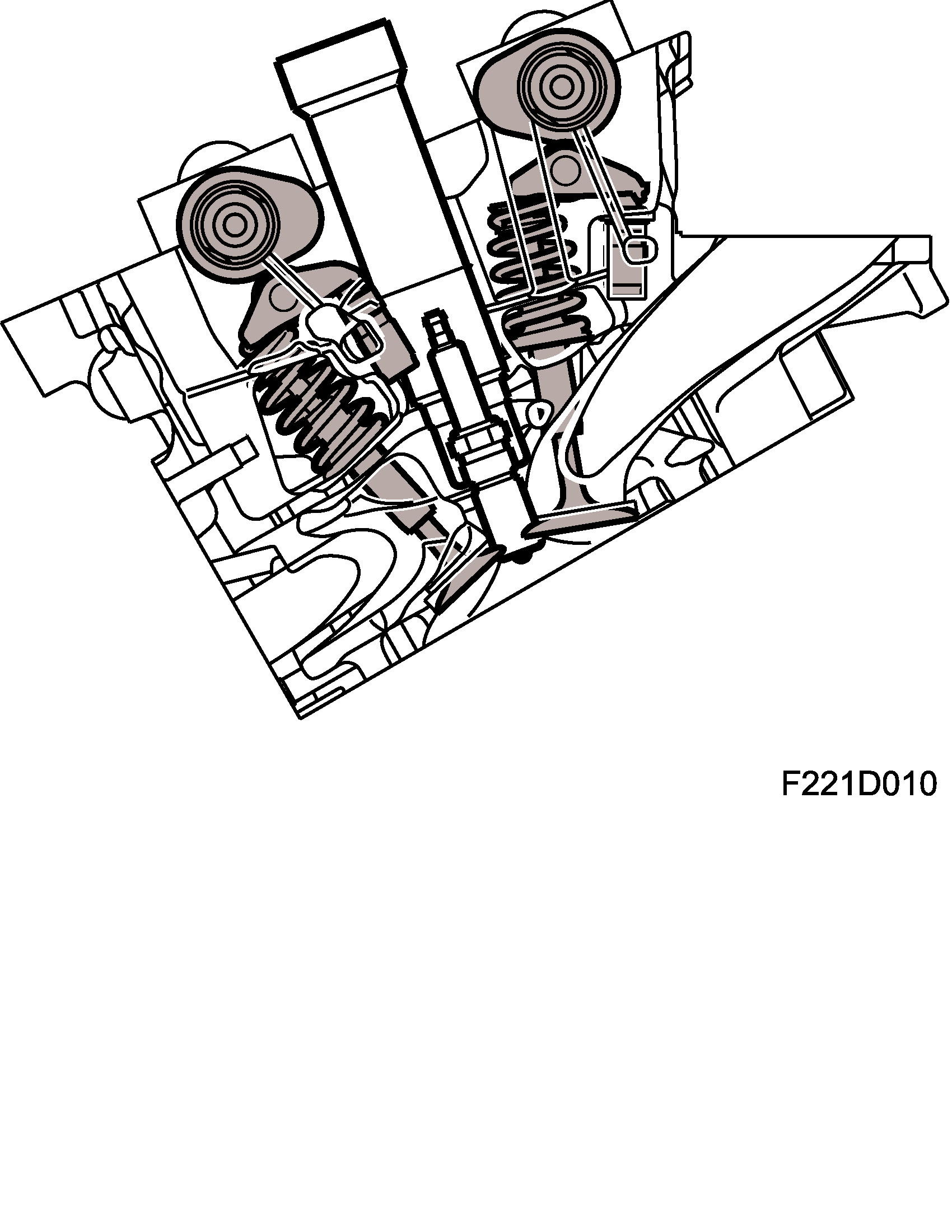 The exhaust camshaft has a silent pinion while the intake camshaft has a hydraulic cam phasing mechanism (CVCP). The camshafts actuate rocker arms with roller bearings (aka roller finger followers) that are shaped like a ball cup at one end. This ball cup meets the ball-shaped upper part of the hydraulic valve clearance balancer. The other end of the rocker arm actuates the valve stem. The hydraulic valve clearance balancers keep the clearance between the rocker arm /roller bearing at zero. The valve clearance balancers thus do not participate in the movement of the valve mechanism.