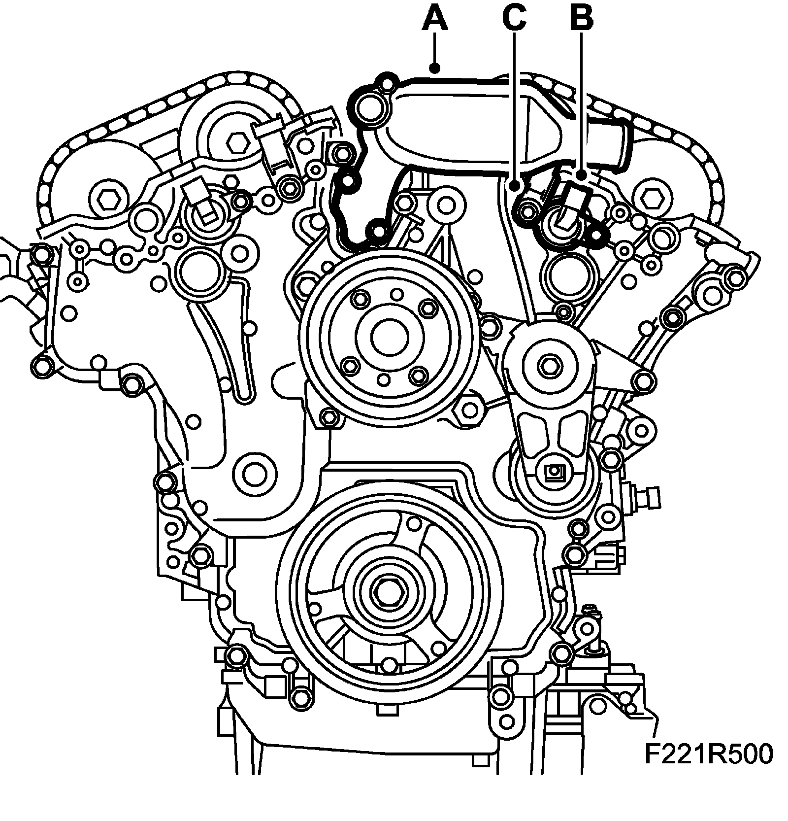 12. Fit the camshaft position sensor (555F) using a new gasket (C).