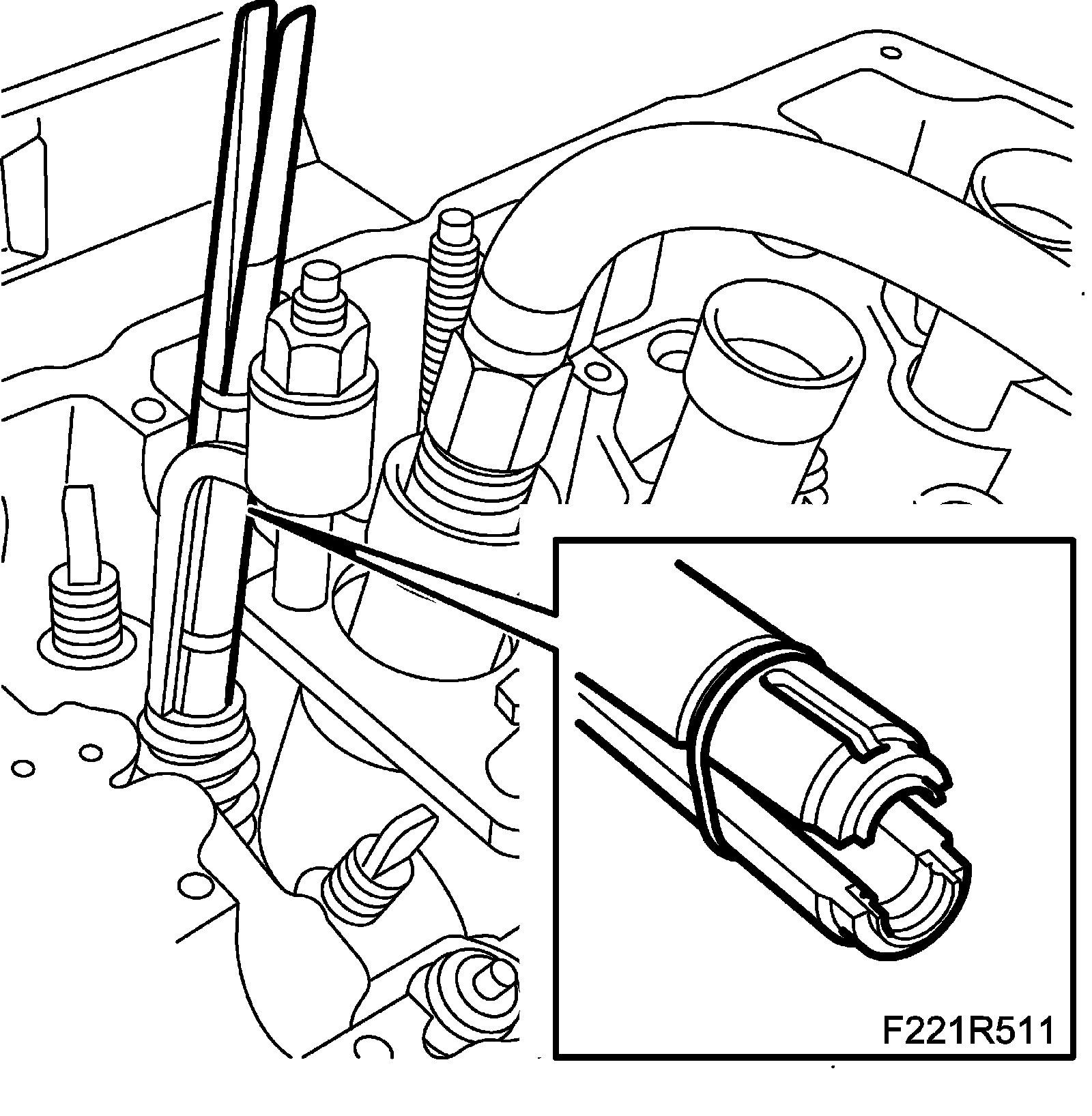 11. Remove the camshaft solenoid valve (695F) (B).