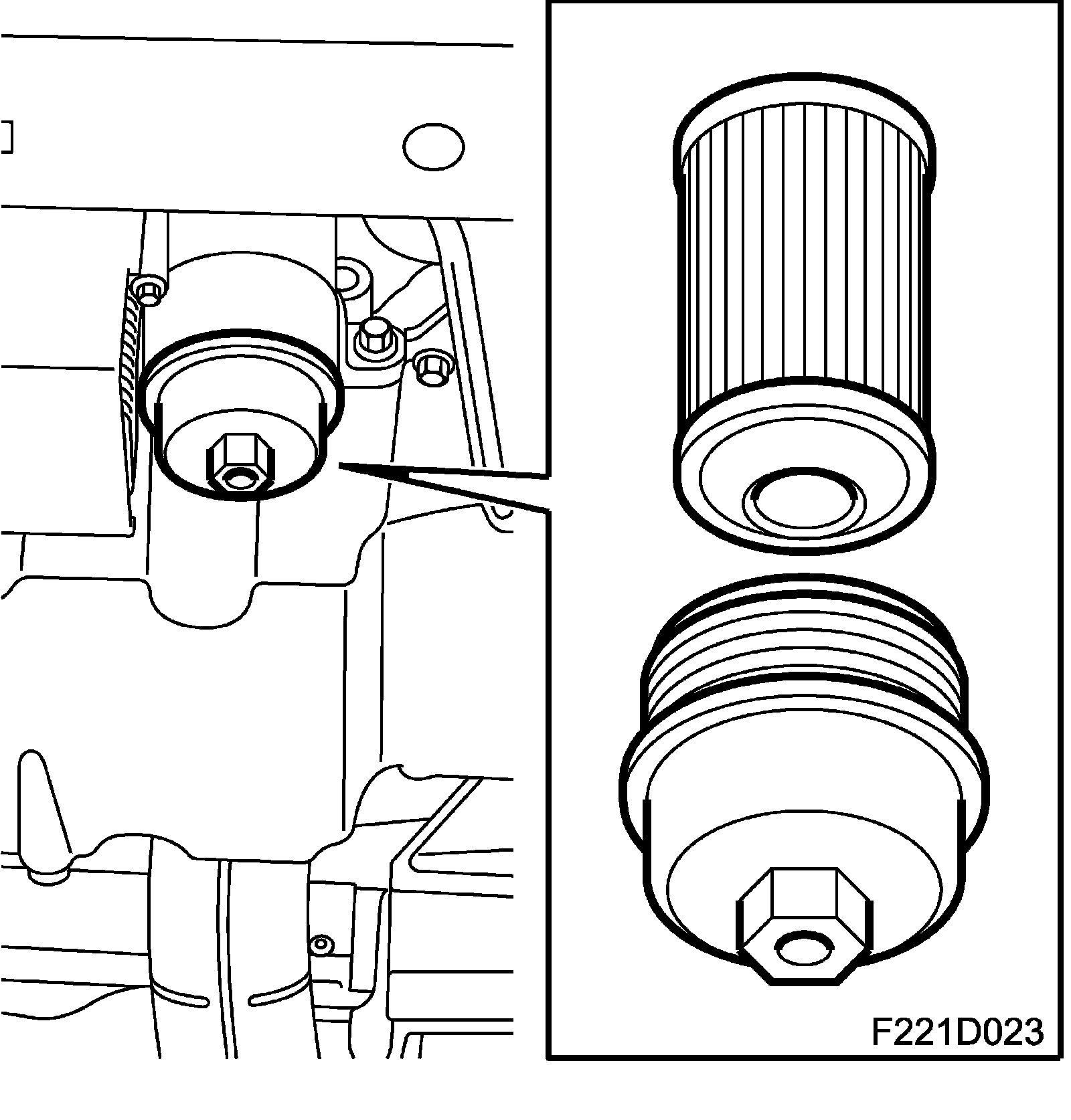 The engine is equipped with an oil filter order to prevent wear and engine damage from particles and to reduce engine wear. The filter is an insert filter. The filter cartridge should be changed as specified in the Service program. In the event of a filter clog, an overflow valve in the oil filter holder cover opens. The oil then passes without being cleaned. This is a safety feature since oil circulation is vital under all conditions.