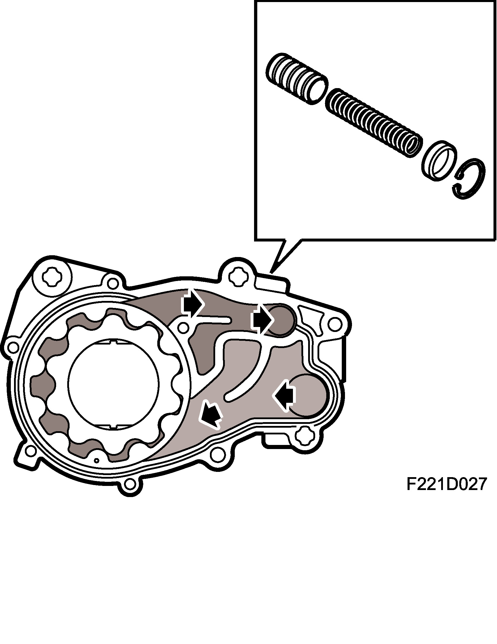 Engine lubrication is handled by a pressure lubricating system in which oil pressure is generated by a gear pump (a gerotor pump) consisting of a pump housing with cover, gear and a centrally displaced gear ring. The pump housing is mounted in the cylinder block behind the cam timing cover and is driven directly by the crankshaft. The pressure relief valve is located in the pump housing. The oil pump sucks in oil from the sump via a pipe. The oil is lead in the gear pump and is then forced out via a duct in the engine to the heat exchanger. Once the oil has passed the heat exchanger, it is filtered in the oil filter.