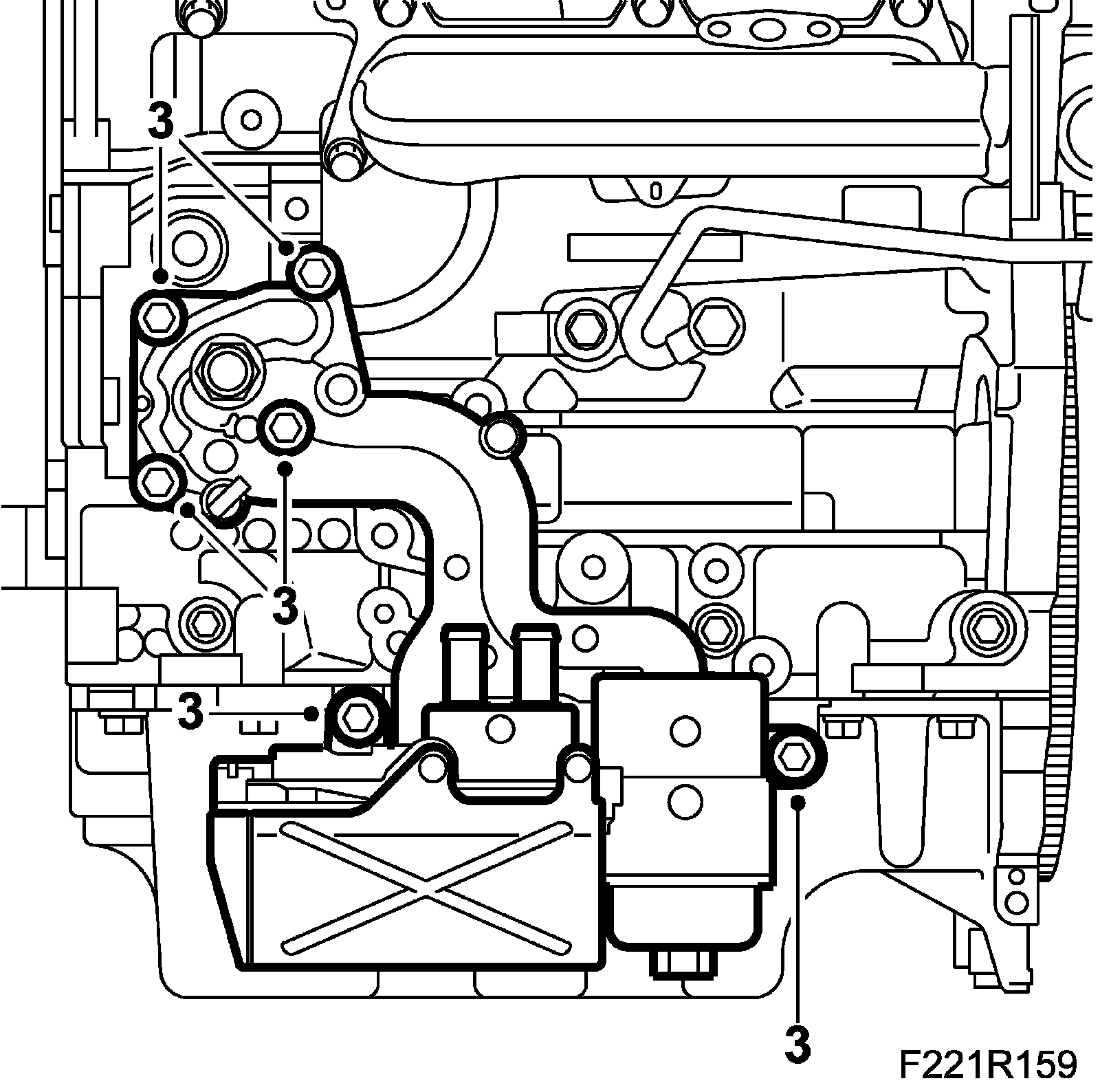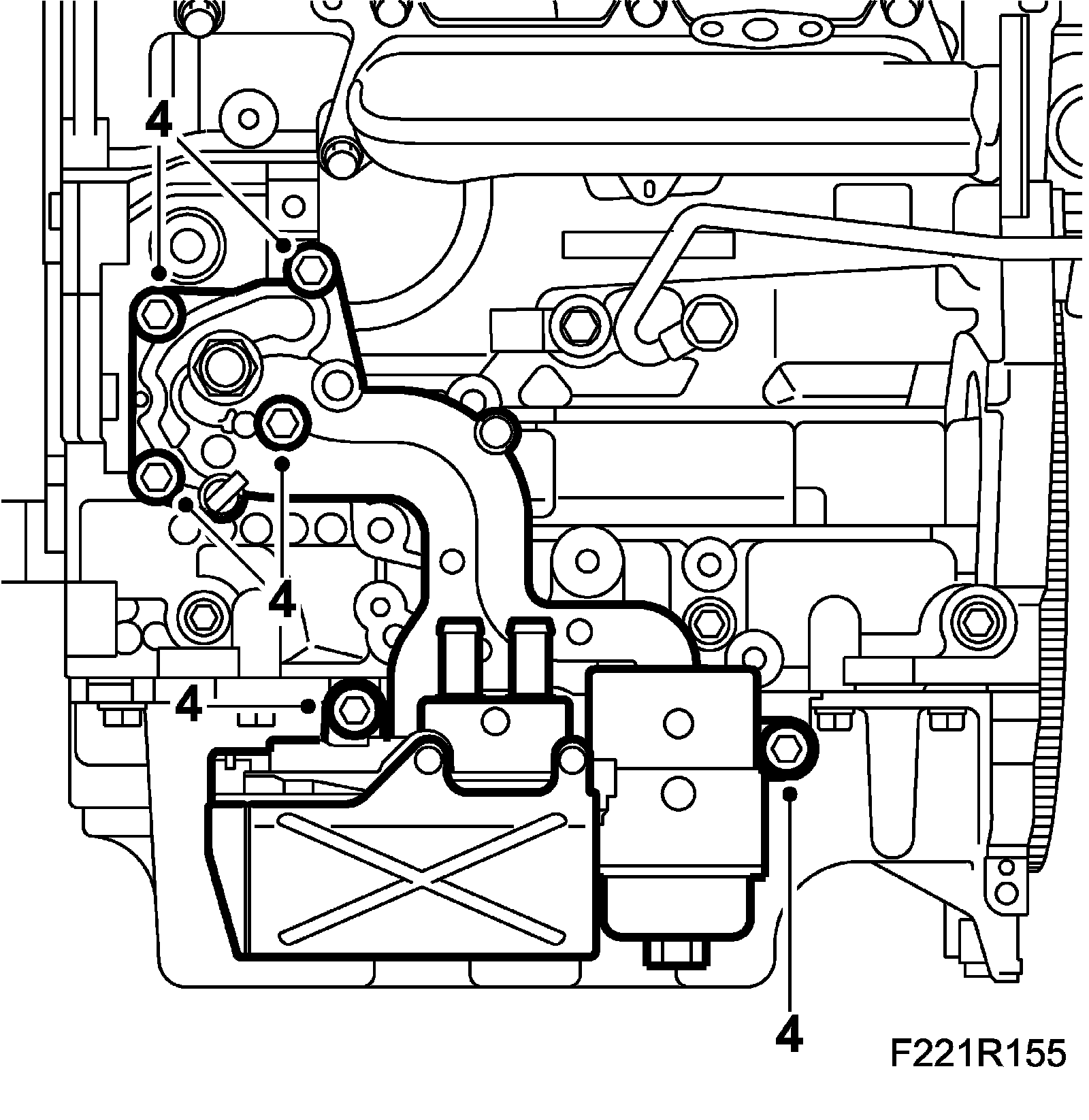 4. Remove the oil cooler assembly from the cylinder block. Remove the gasket.