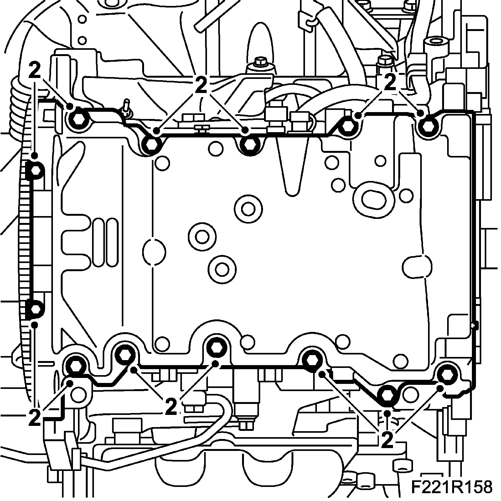 1. Apply a 2 mm thick bead of 93 160 951 Flange sealant on the oil sump sealing surface and fit a new seal on the oil strainer induction pipe.