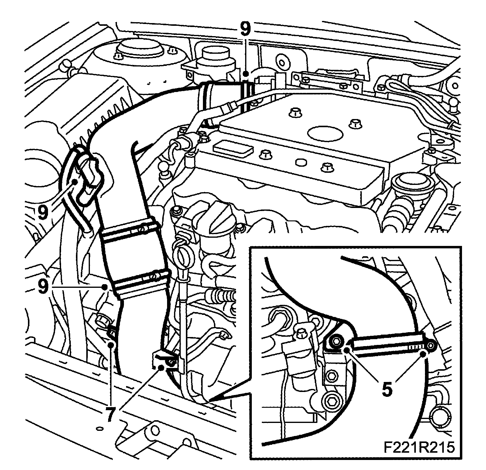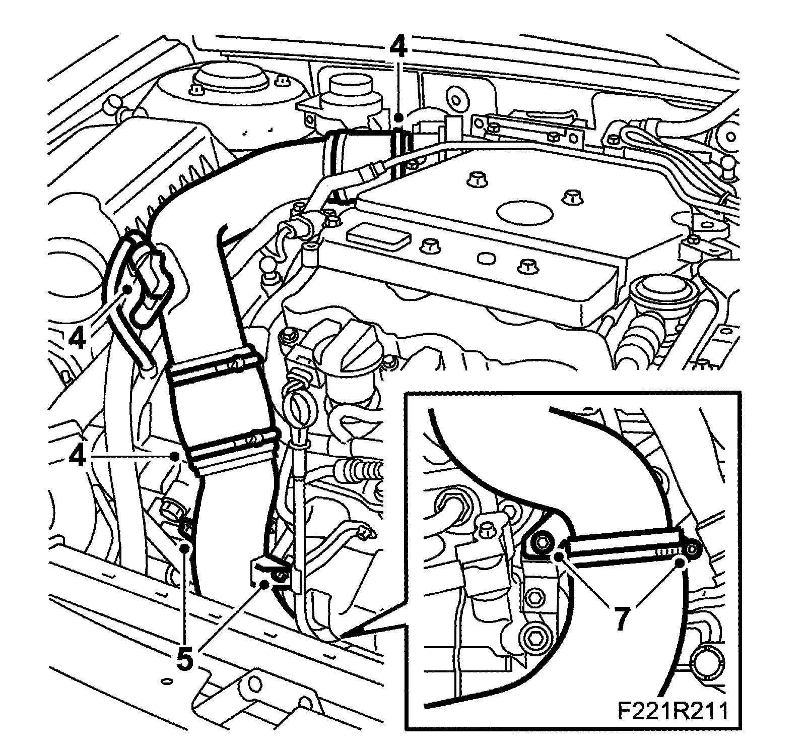12. Press the radiator assembly forward and remove the turbocharger delivery pipe.
