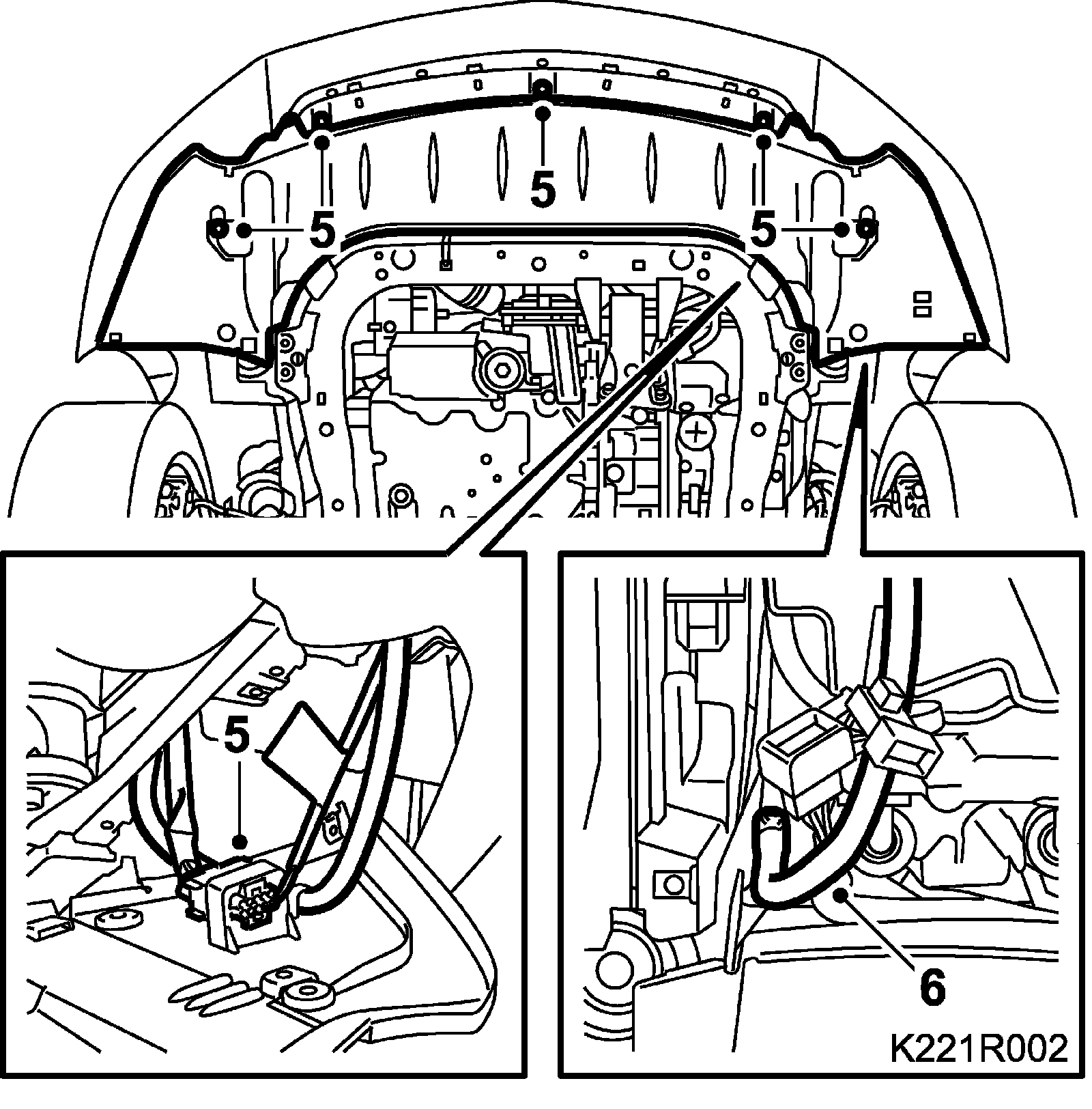 5. Remove the lower spoiler shield. Unplug and remove the connector.