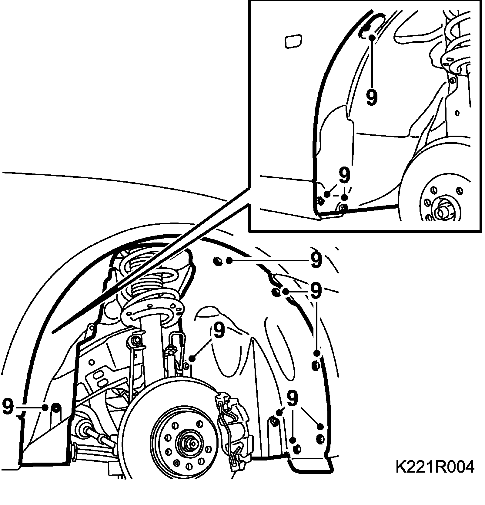 9. Remove the right wing liner and detach the front part of the left wing liner.