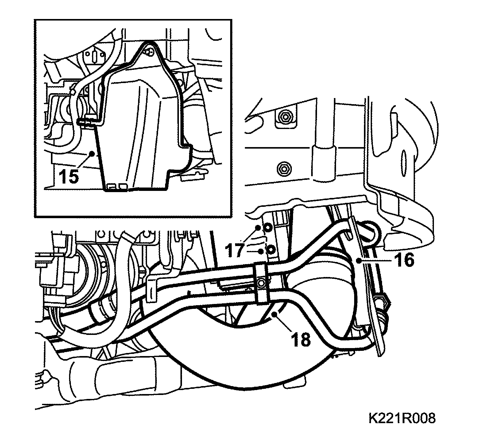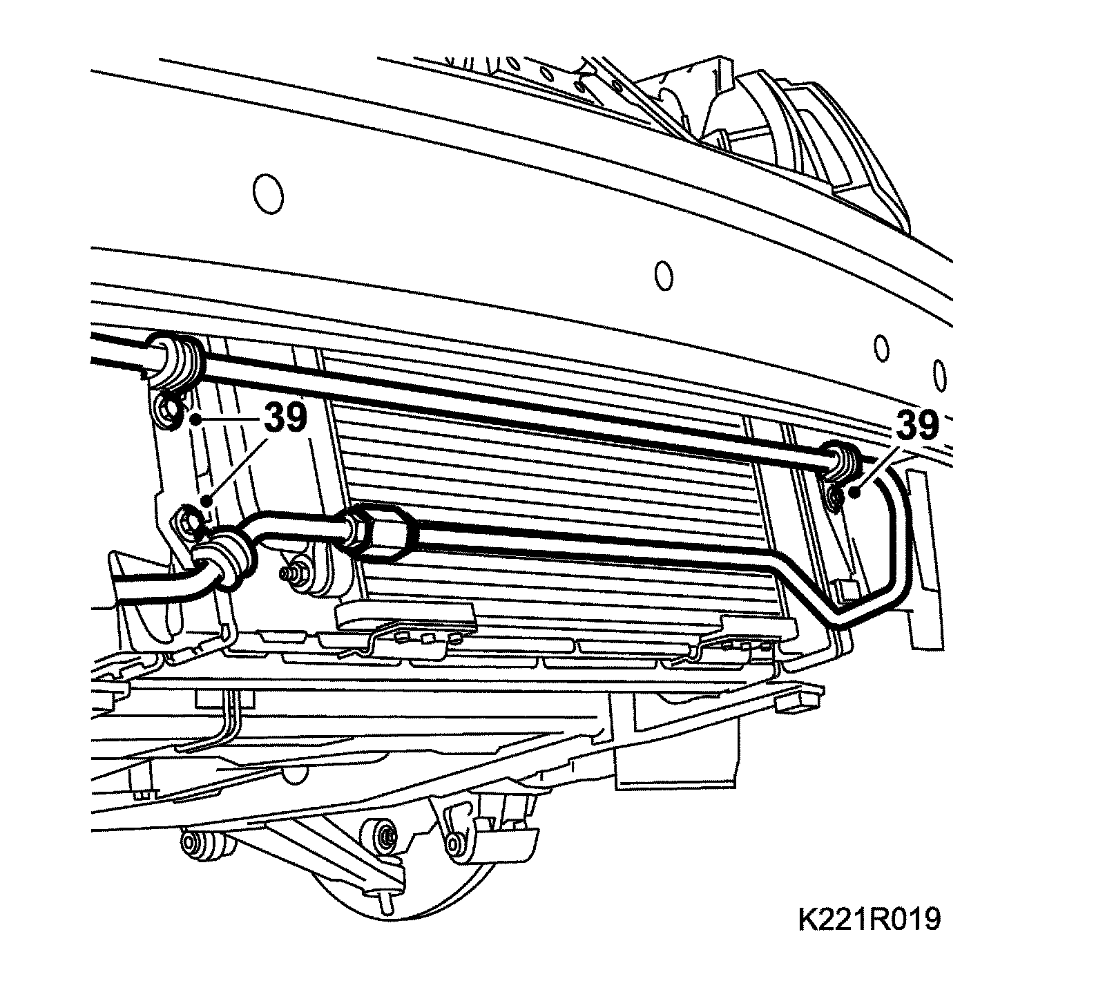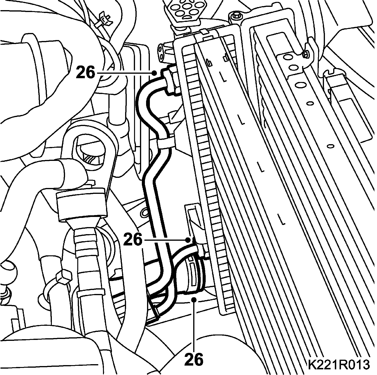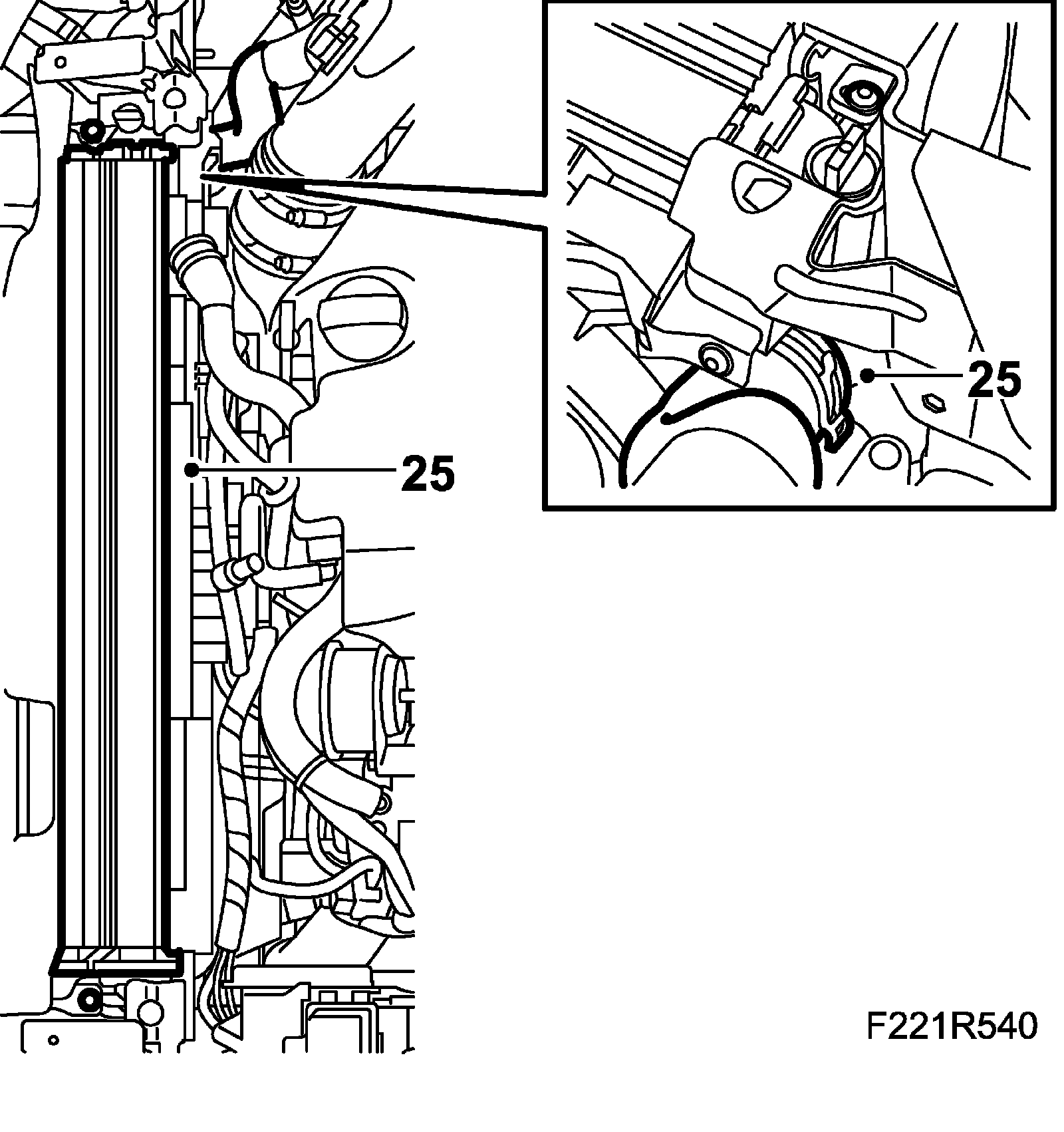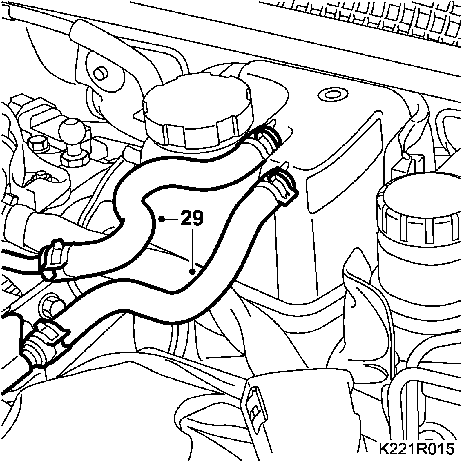 26. Place a receptacle under the radiator and remove the lower radiator hose. Aut: Detach the oil pipes from the radiator using 87 92 806 Removal tool, oil pipes, automatic transmission. Plug the pipes.