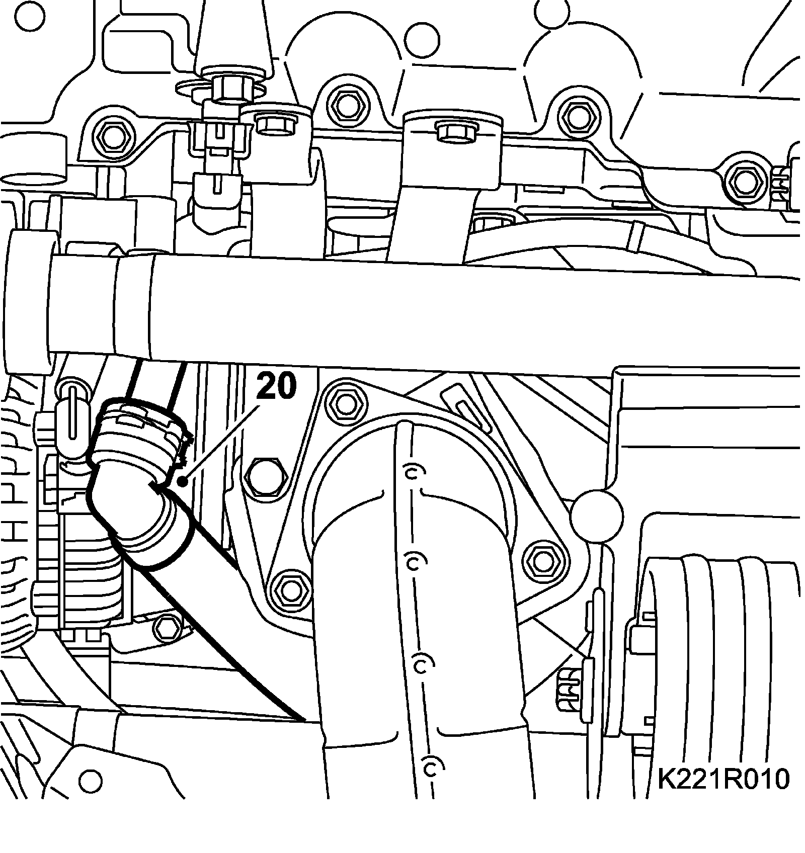 20. Place a receptacle under the car and remove the coolant connection. Move the hose aside.