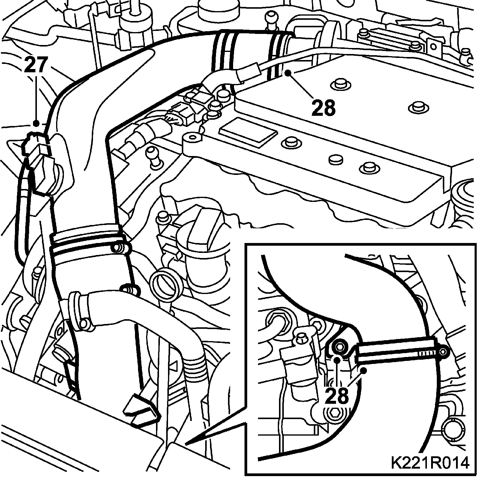 28. Remove the charge air pipe between the throttle body and charge air cooler.