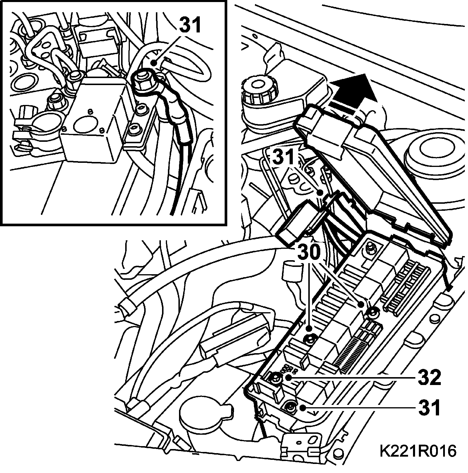 30. Remove the cover on the main fuse box and undo the two retaining screws.