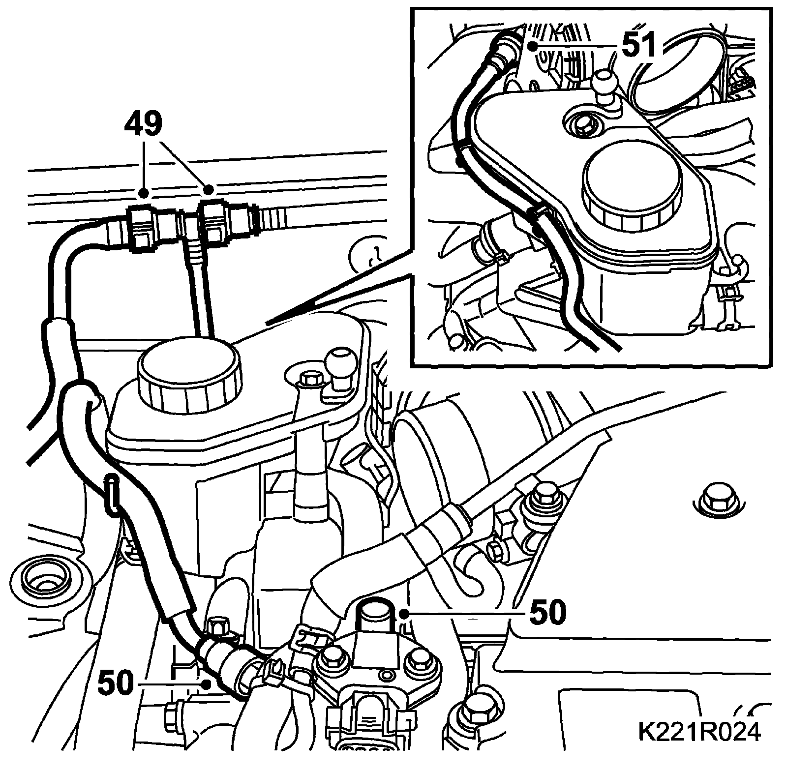 48. Detach the coolant hose and undo it from the holder on the engine.