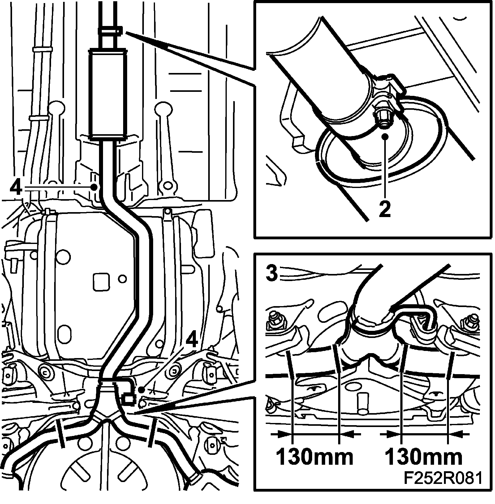 3. Cut the exhaust pipe to the specified measurement - 130 mm. Use 83 95 667 Pipe cutter/exhaust system.