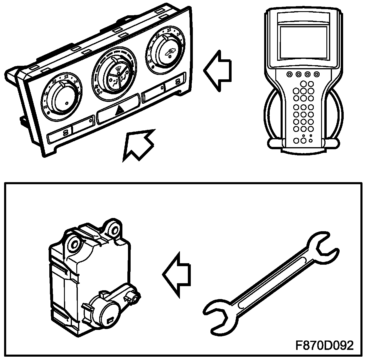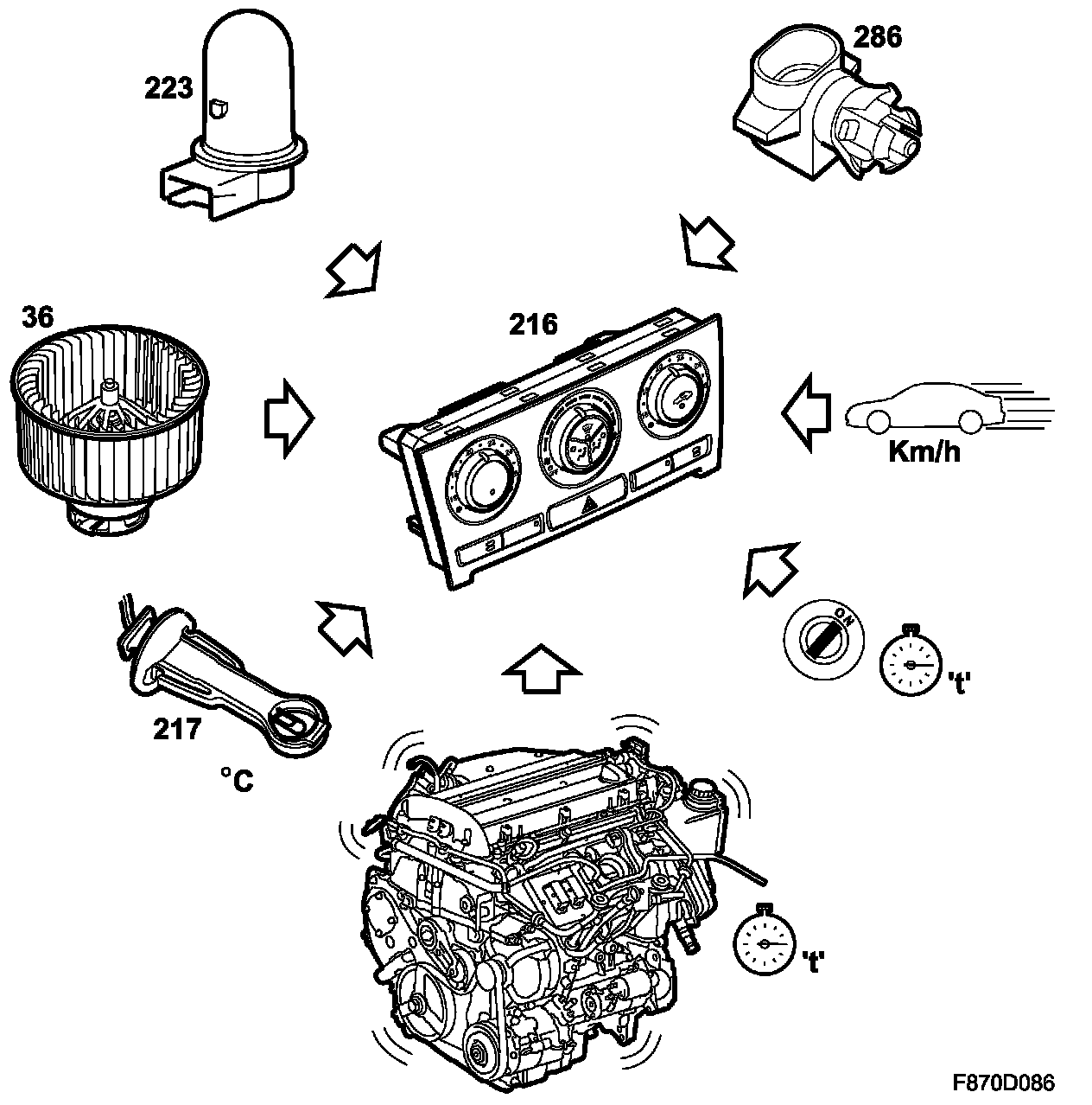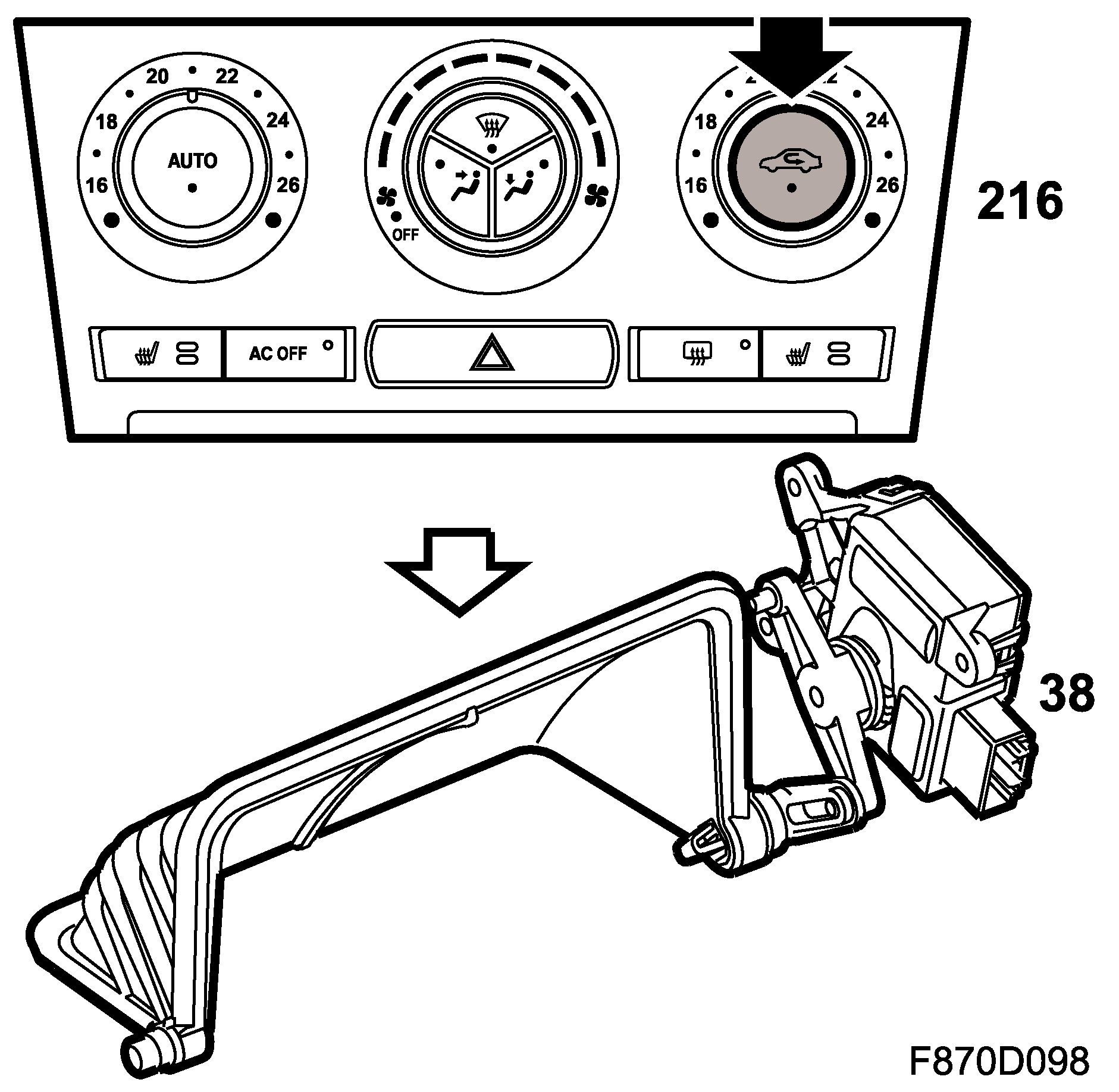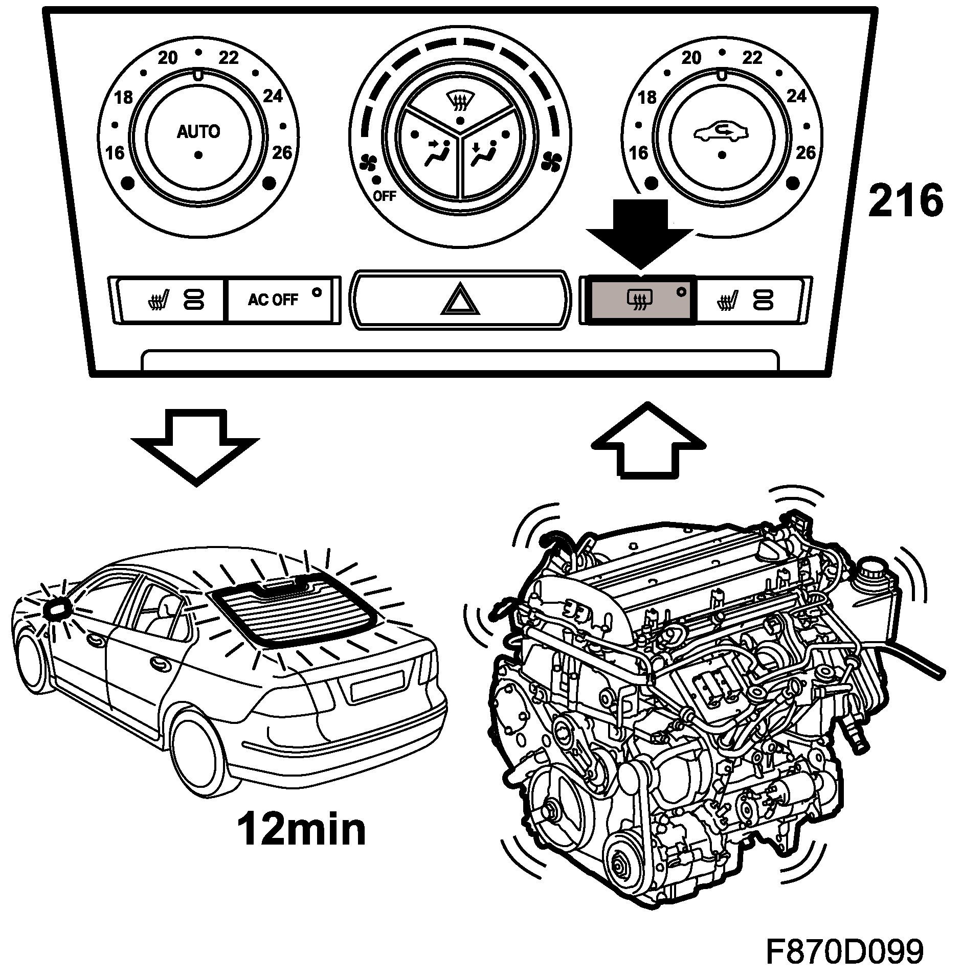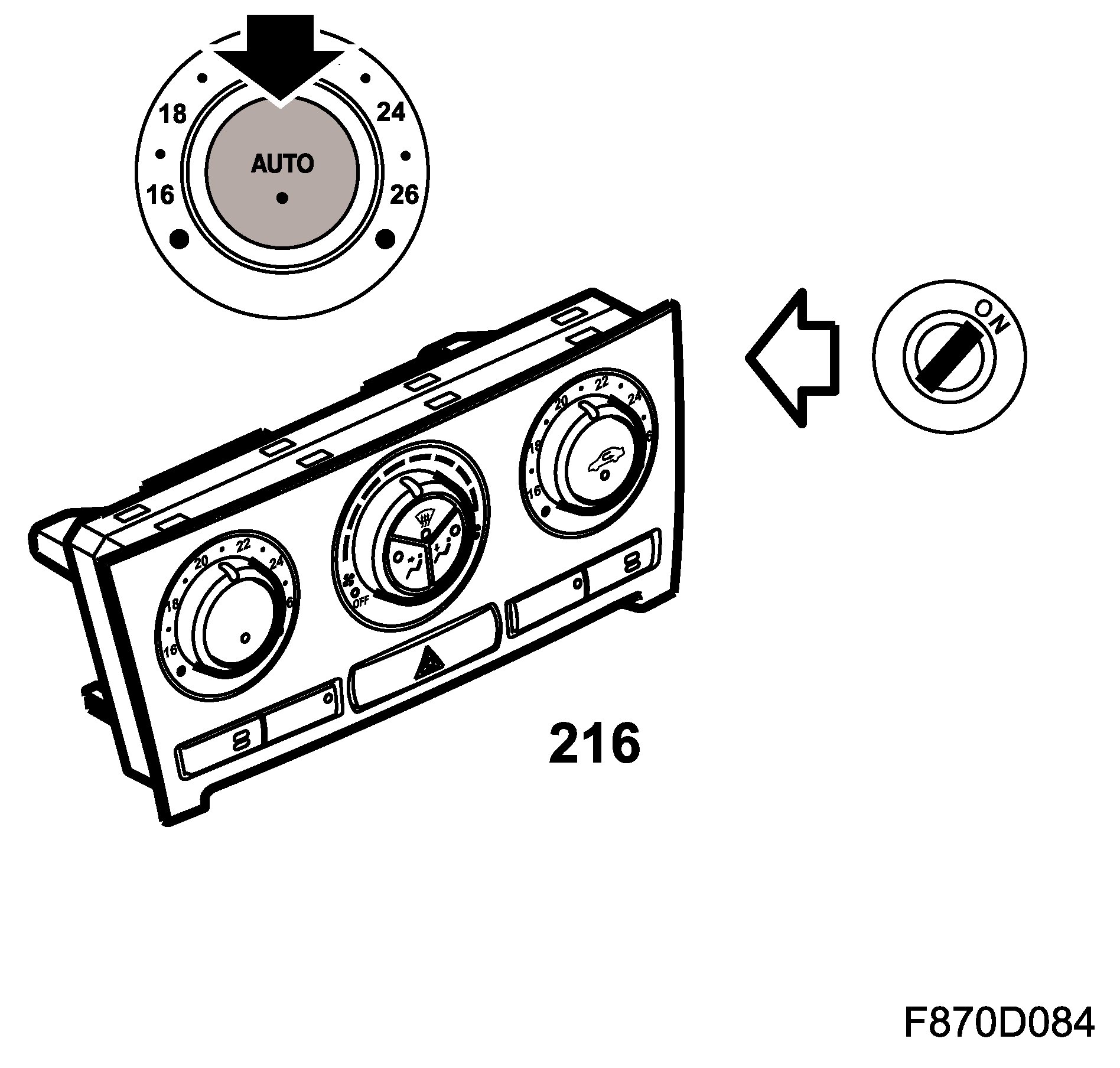 When the ignition is switched off, no buttons are operable, all stepping motors are stopped and recirculation off is selected after 10 seconds. Diagnostic communication is maintained if it was running when the ignition was switched off, but it cannot be restarted.
