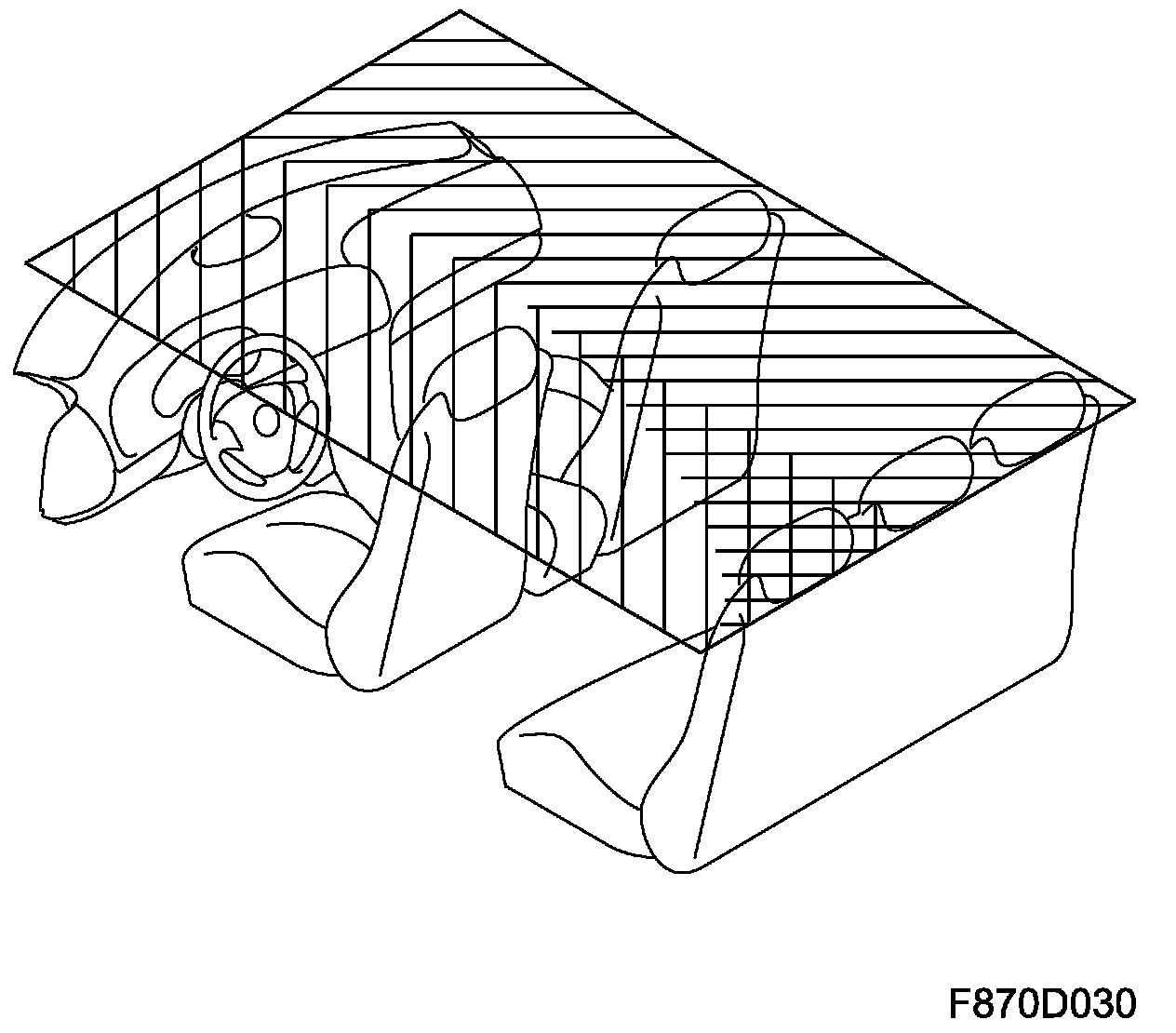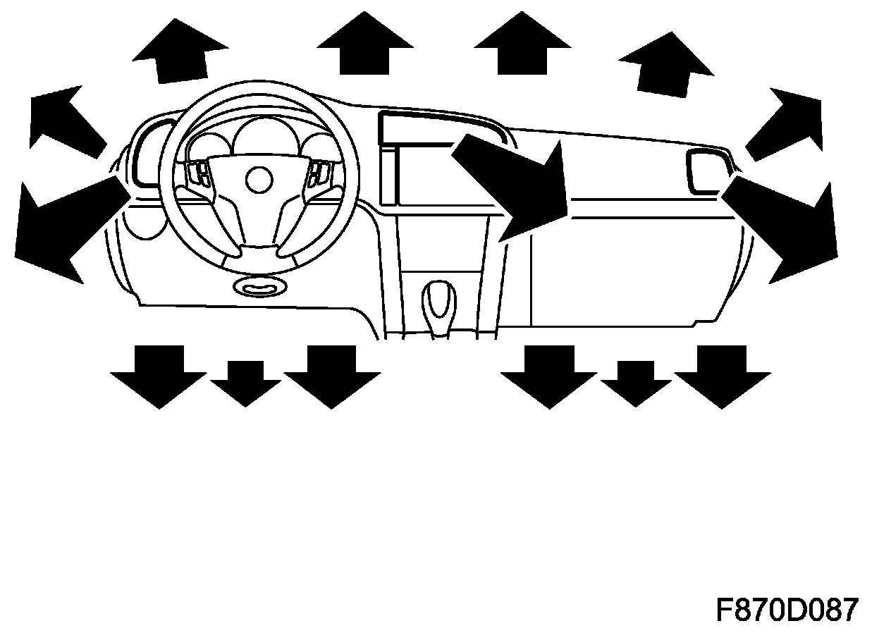 When the driver zone requires warmth, defrost+floor is selected; when cooling is required, the panel damper is also opened. If rapid cooling is required, the air distributed to the defroster is reduced, and if necessary also the air to the floor vents, increasing the flow of air through the panel vents. When the car is started in cold weather, defrost only is selected initially. Once the coolant has reached a temperature of 35 degrees C, the floor damper will start to open. At 45 degrees C, the floor damper opens more rapidly and the defroster damper is closed slightly to distribute more air to the foot wells.