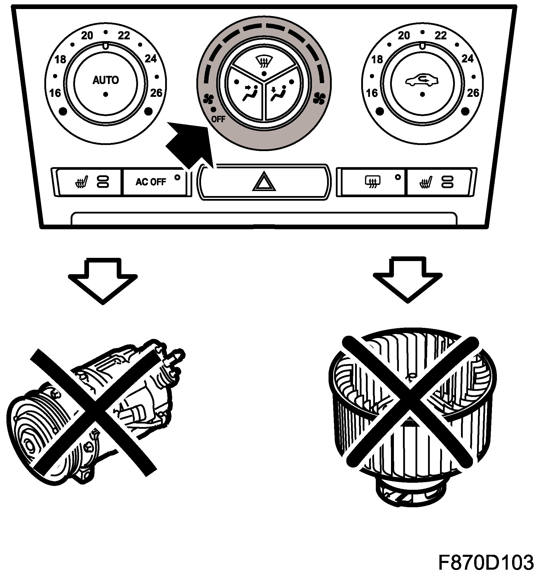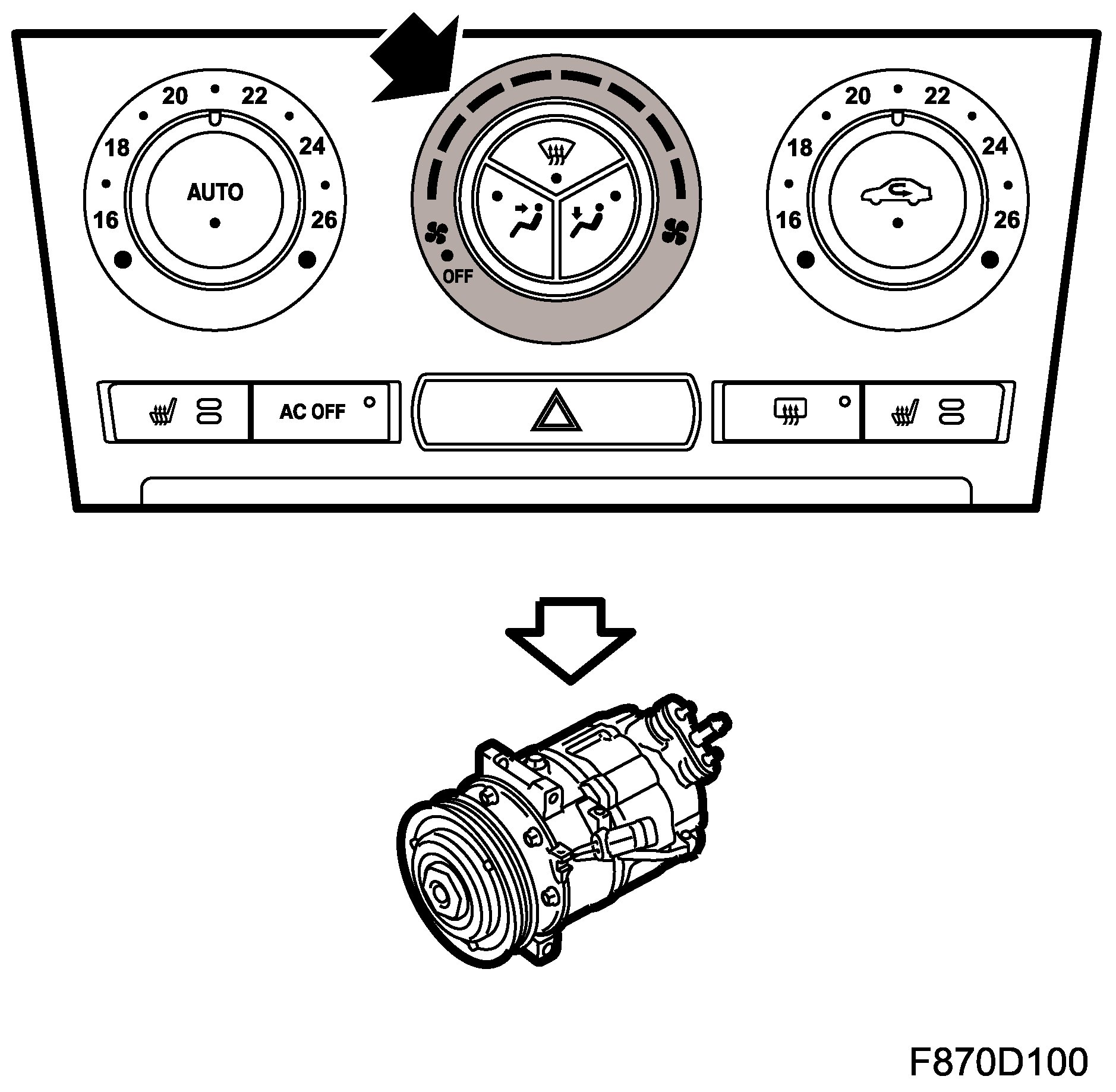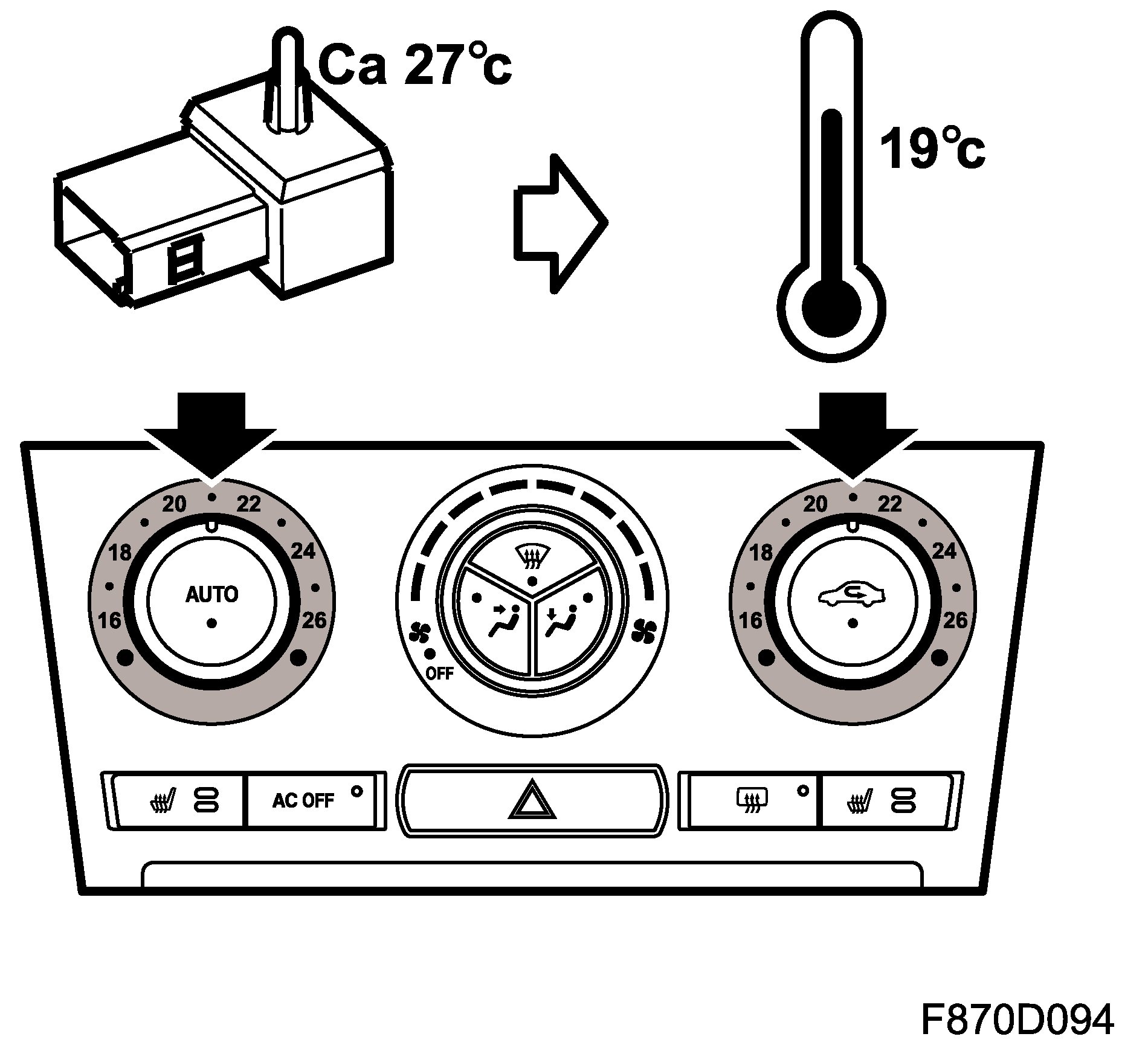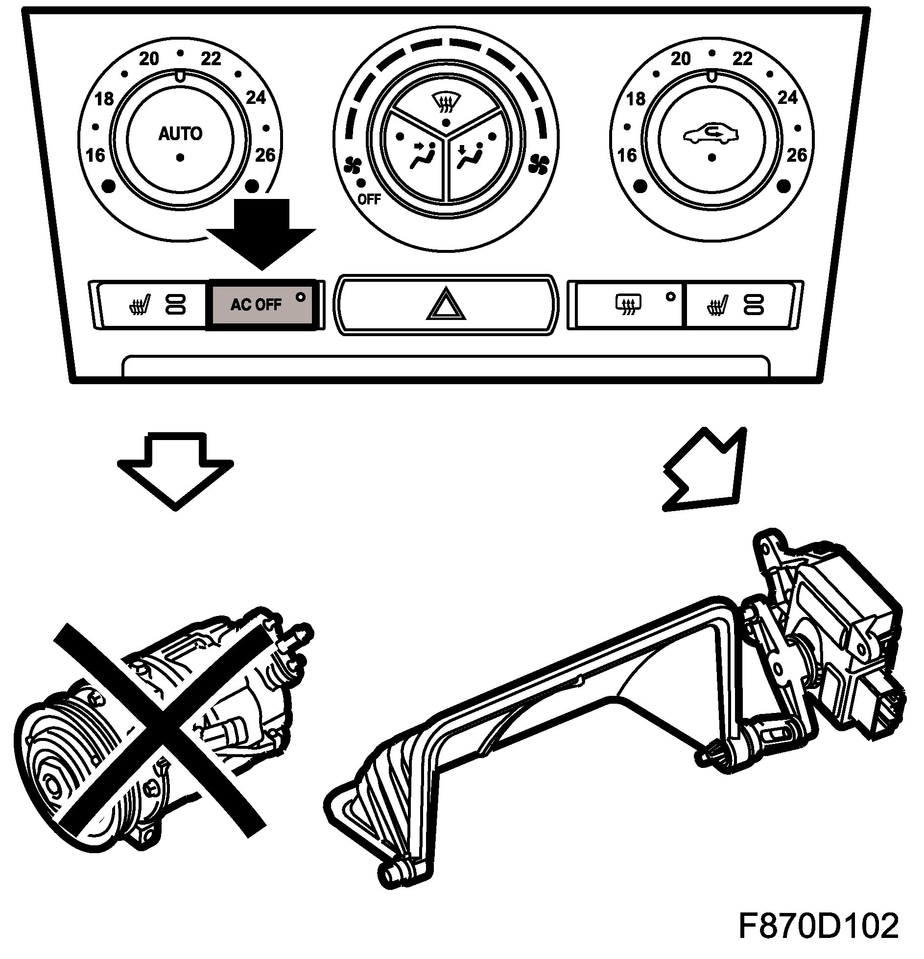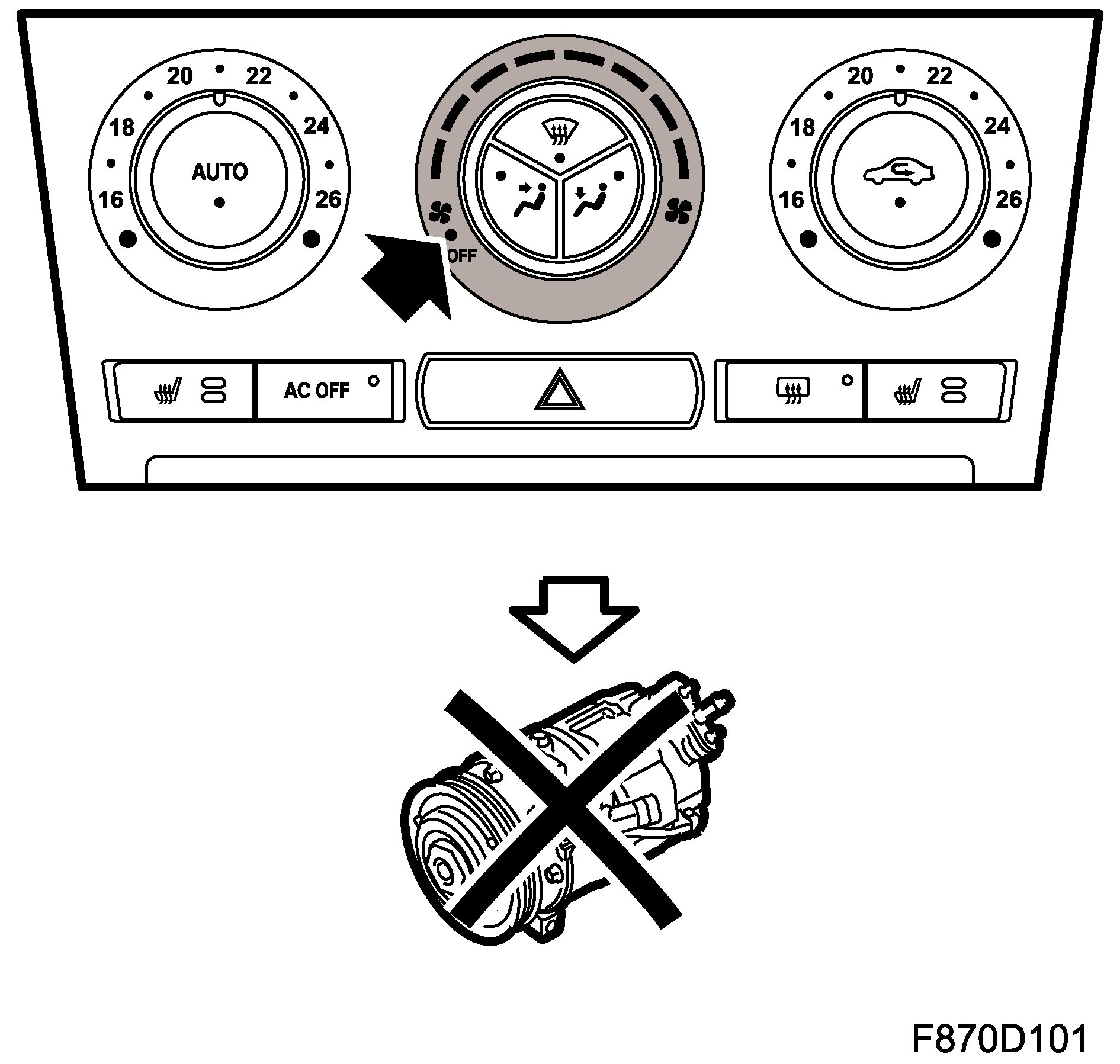 The system is set as follows for AC OFF: