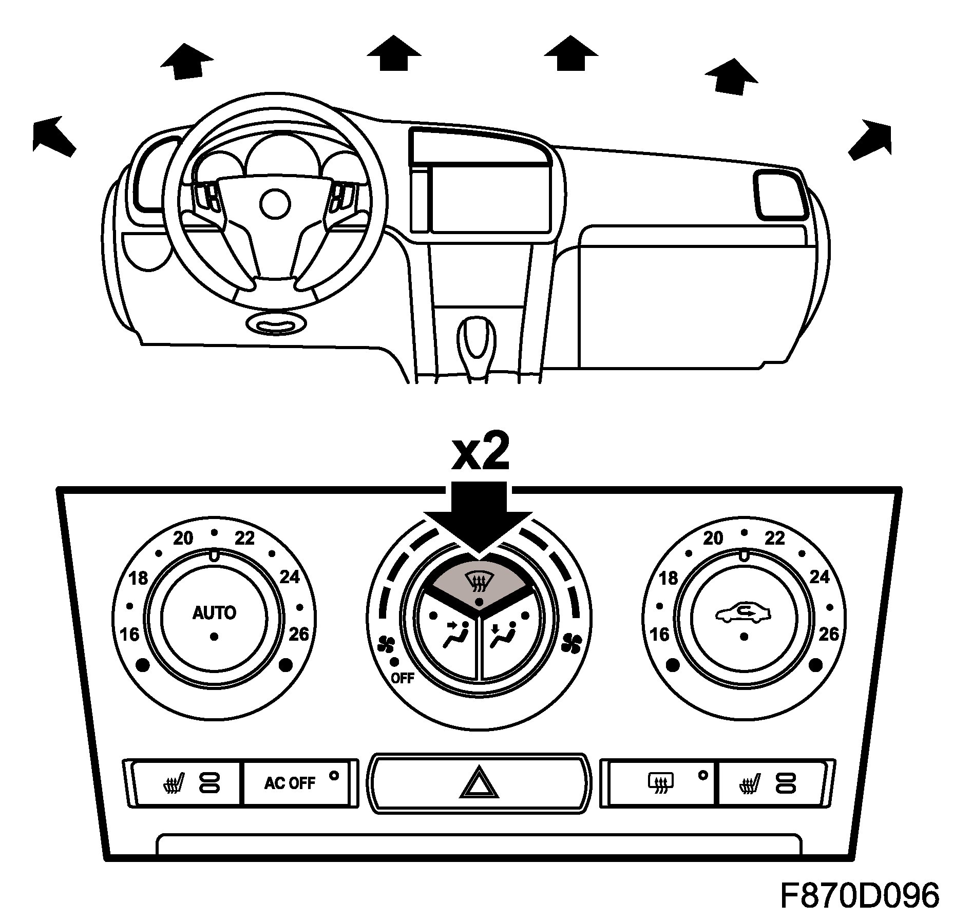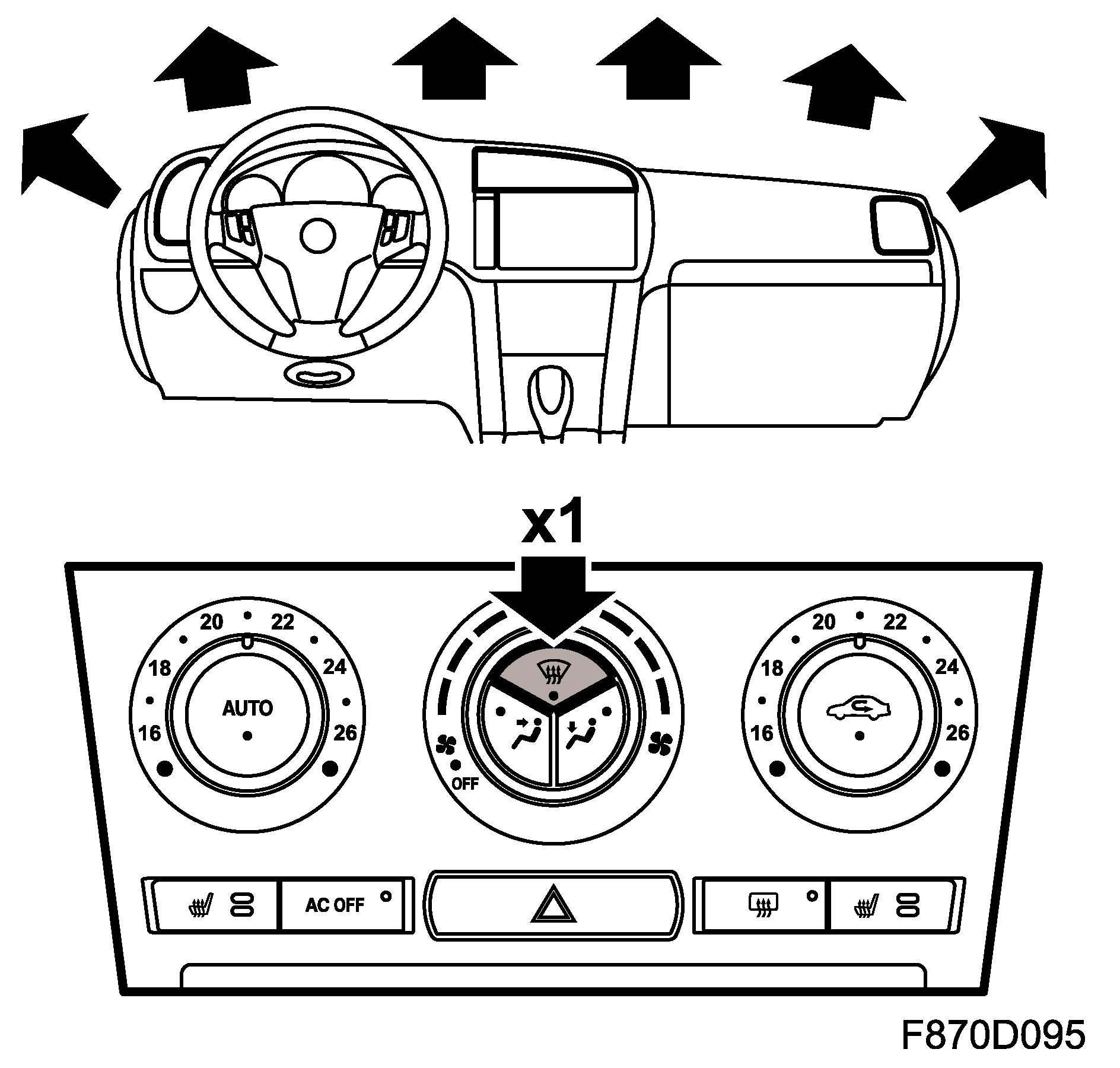 ^ air distribution in defrost/floor setting