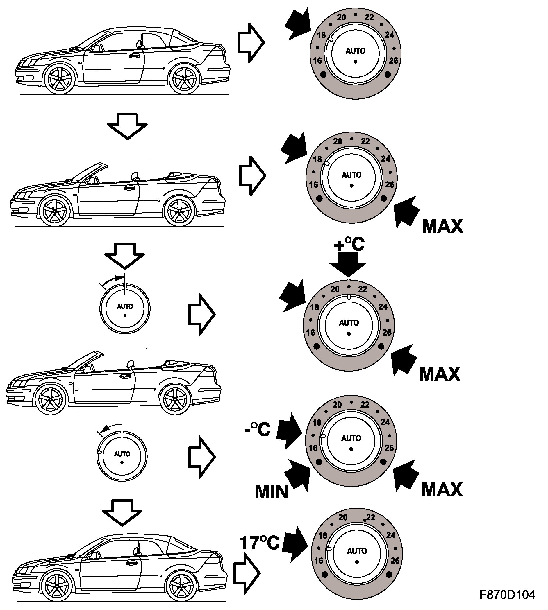 When the soft top is closed, the ACC system regulates automatically based on the temperature set with the knob.