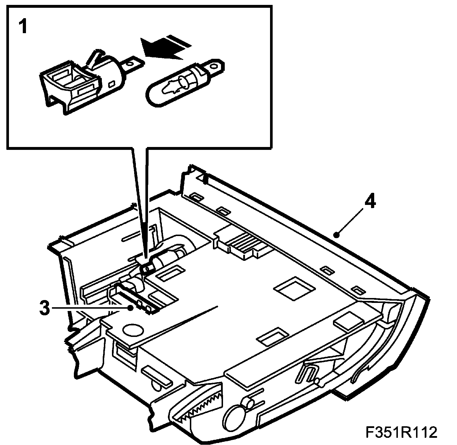 3. Press in the catch and remove the cigarette lighter and bulb.