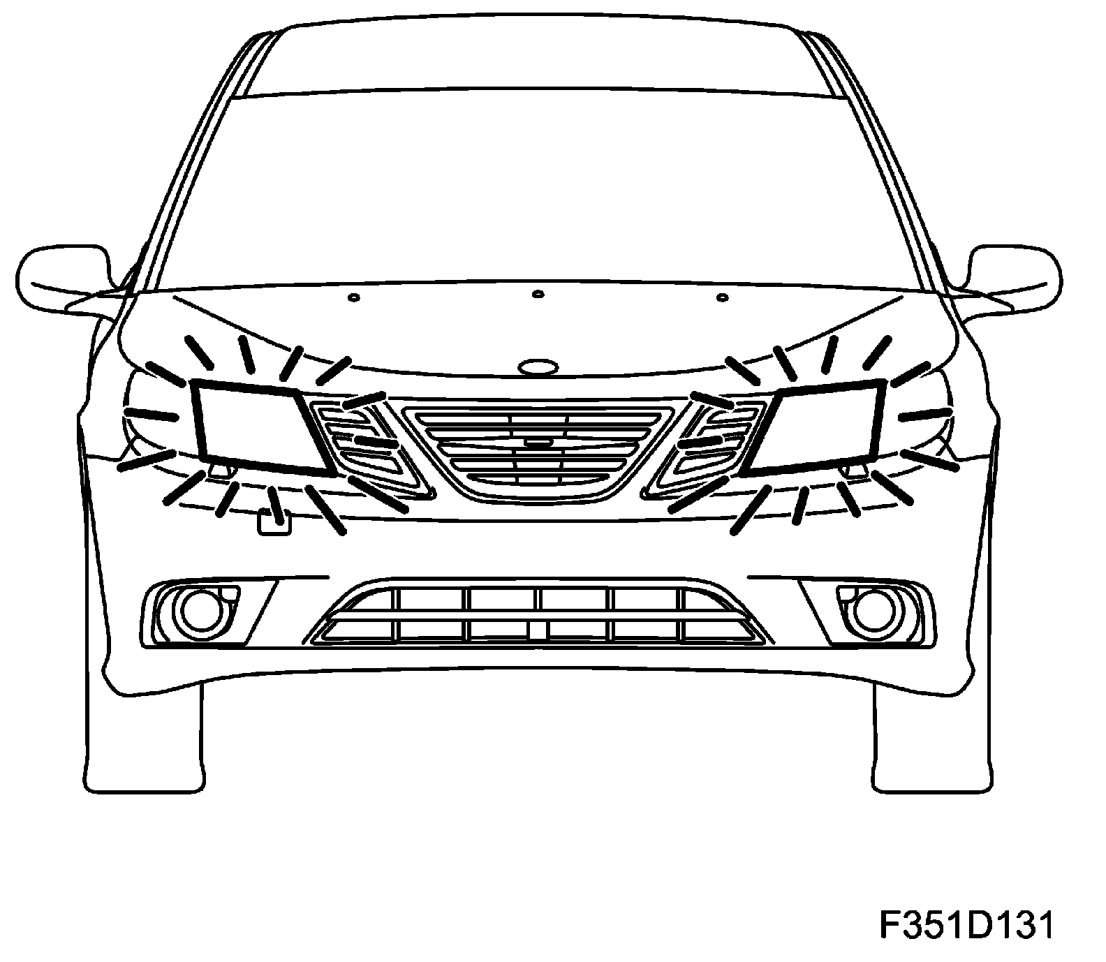 Power is supplied to the headlamps from the Underhood Electrical Center, UEC (342), which has semiconductor outputs. This makes it possible to supply PWM-regulated voltage to the lamps. The output value of the supply voltage is 13.5 V, which extends the service life of the bulb.