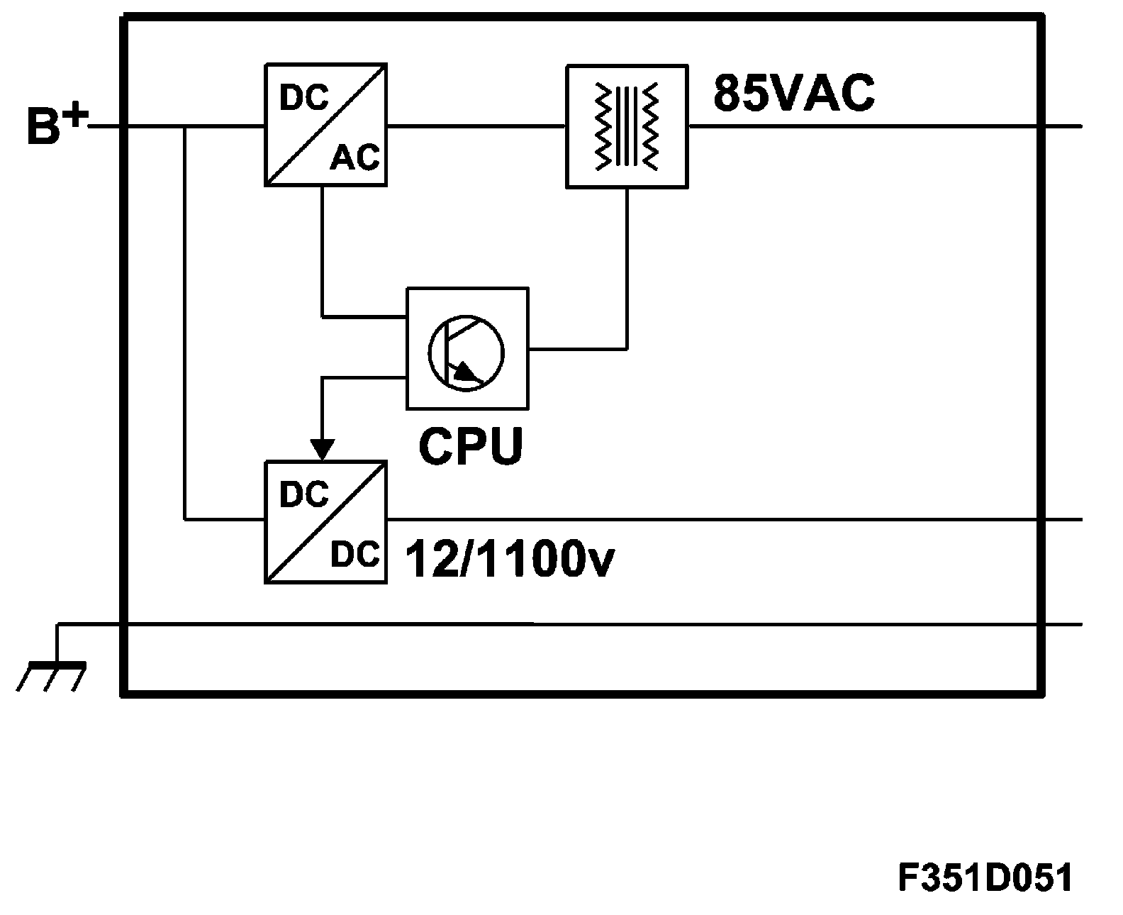 Once discharge has started after the ignition impulse, the ballast ensures that the bulb receives the proper operating conditions as regards current and voltage. The ballast produces running voltage in a DC/AC converter, where 12 V DC is converted to approx. 85 V AC with a frequency of about 300 Hz. Upon start of a cold bulb, running voltage, running voltage just after ignition impulse tends to be relatively low, approx. 20 V. As long as B+ is supplied to the ballast, it produces a running voltage and the bulb lights.