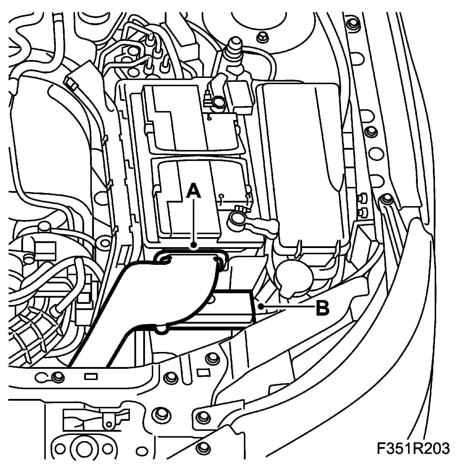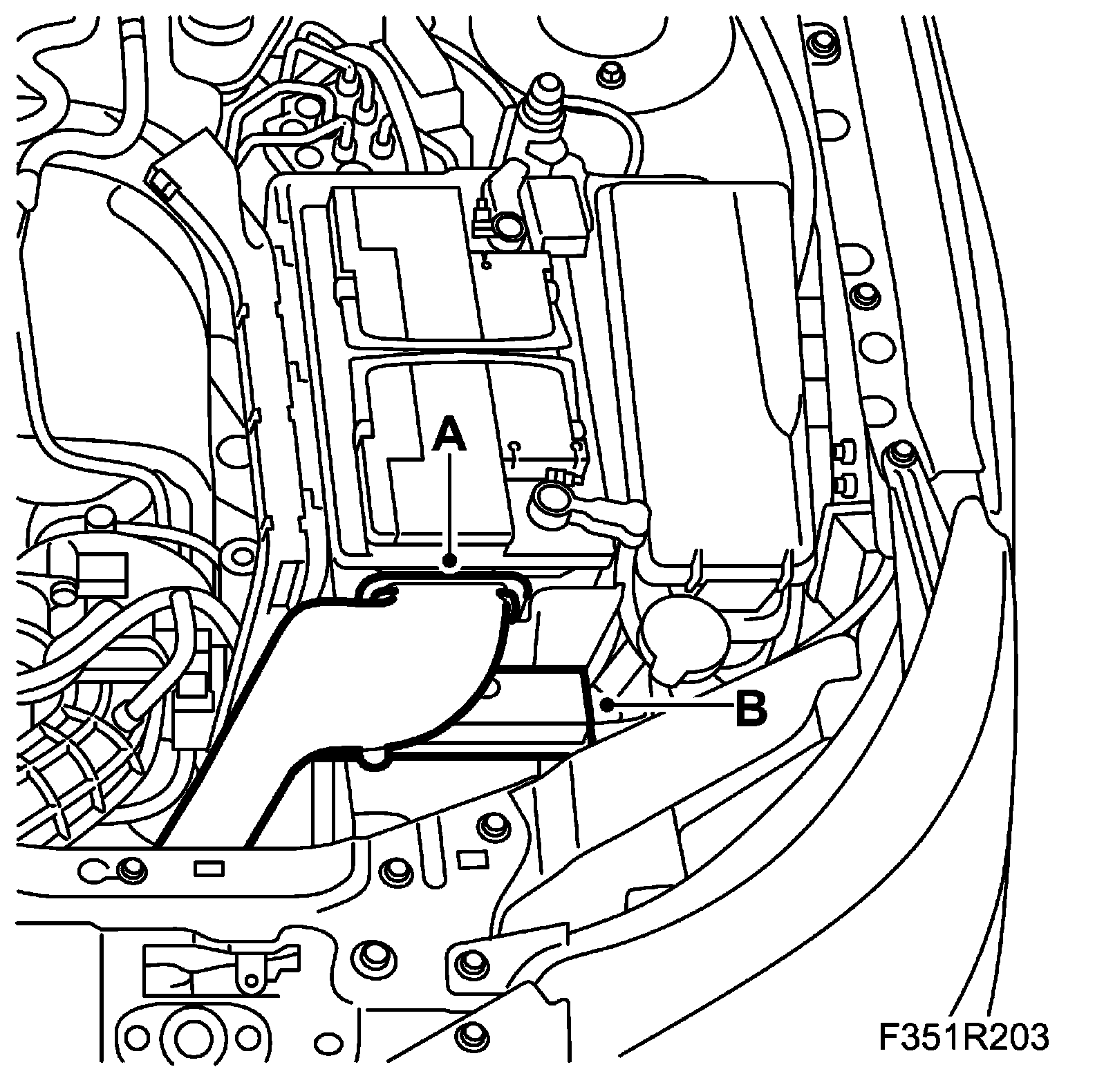 2. LH: Fit the battery cover, air inlet pipe (A) and main fuse box (B).