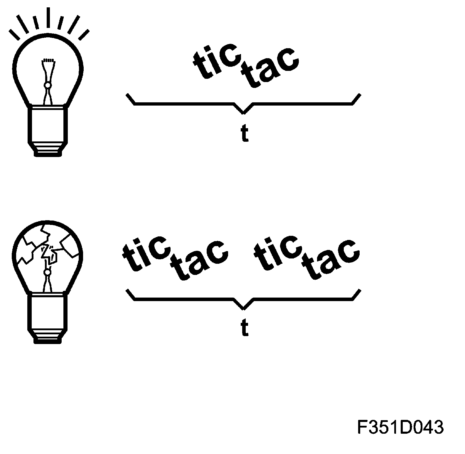 The UEC supplies current in each circuit. In the event of filament breakage in the front left direction indicator, for example, the UEC sends the bus message "Front left indicator not working" ON for pin 3(F). This bus message is used by the BCM (707) and the MIU (540). The BCM doubles flash frequency to 180 flashes per minute. A warning message is shown in the SID.