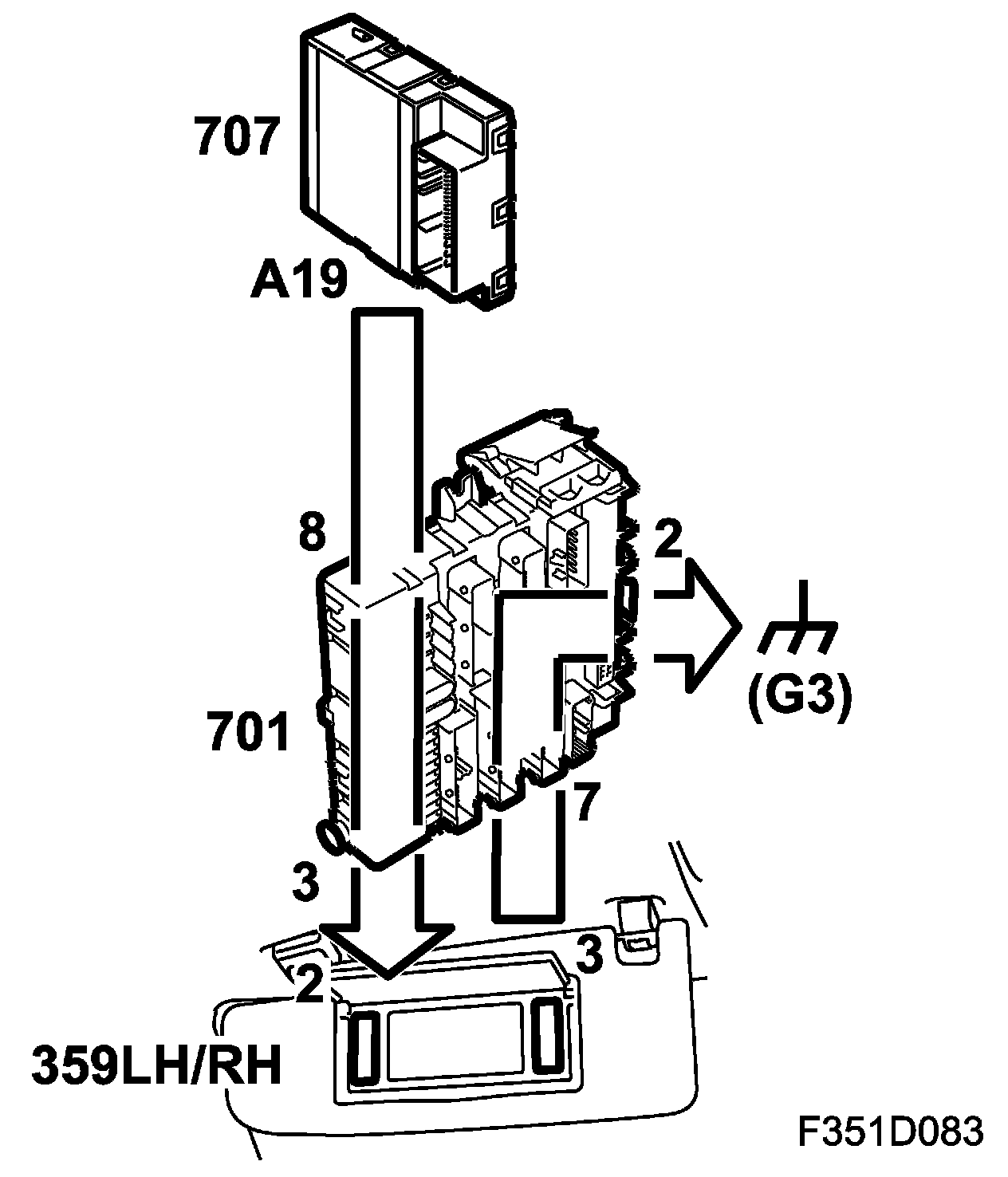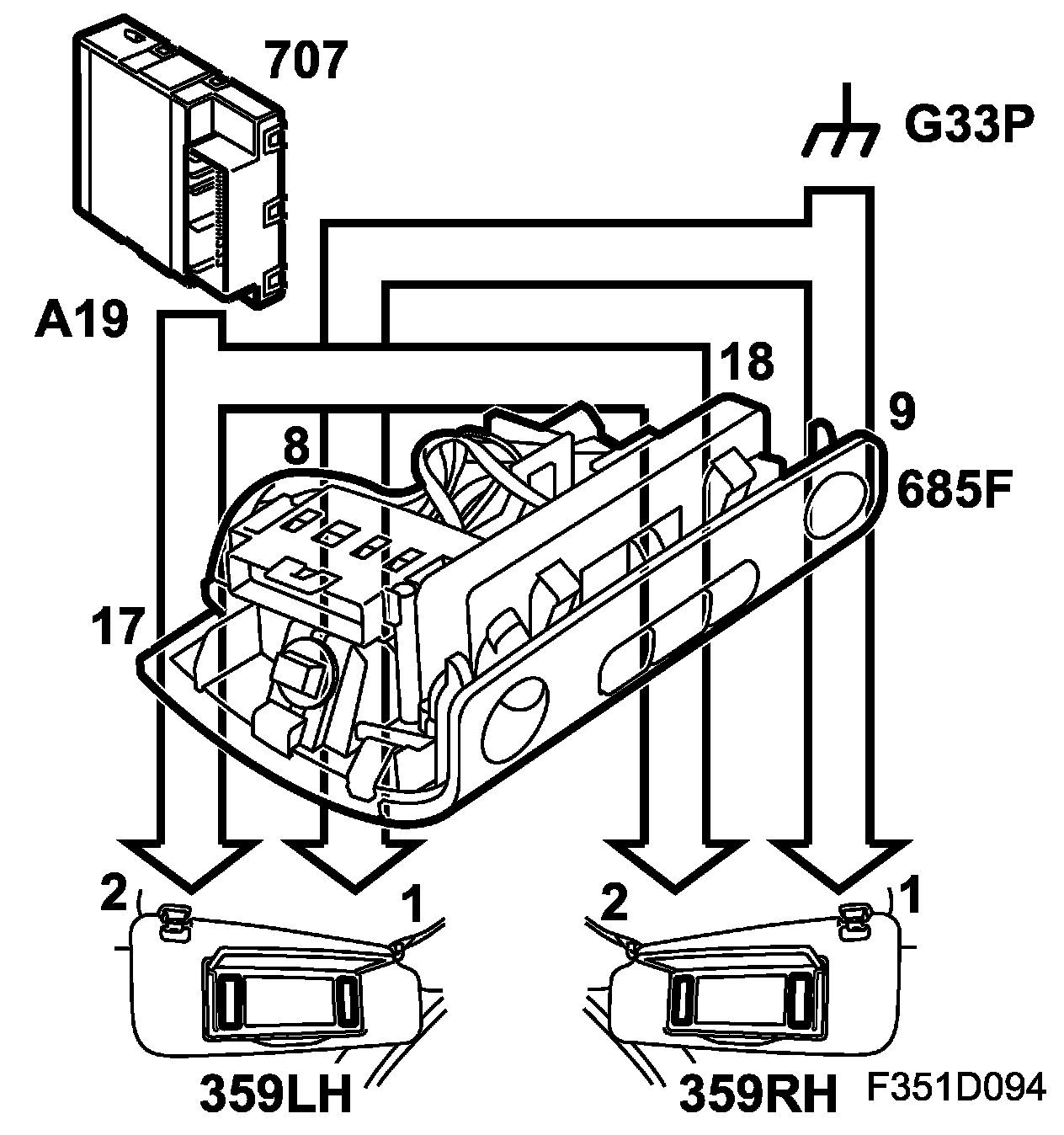 Two lamps and a switch are built in to the sun visor. The switch is activated by the vanity mirror.