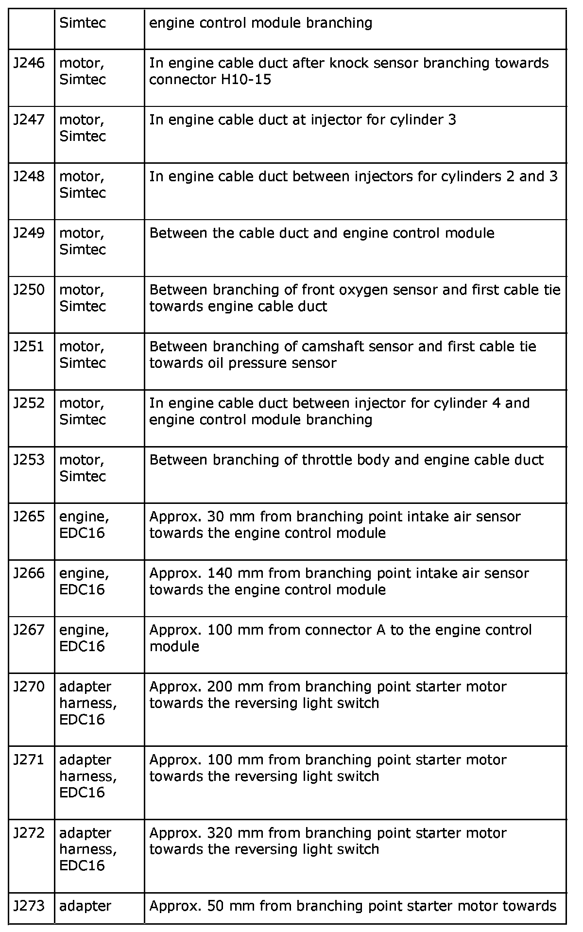 J245 (Continued) To J273:
