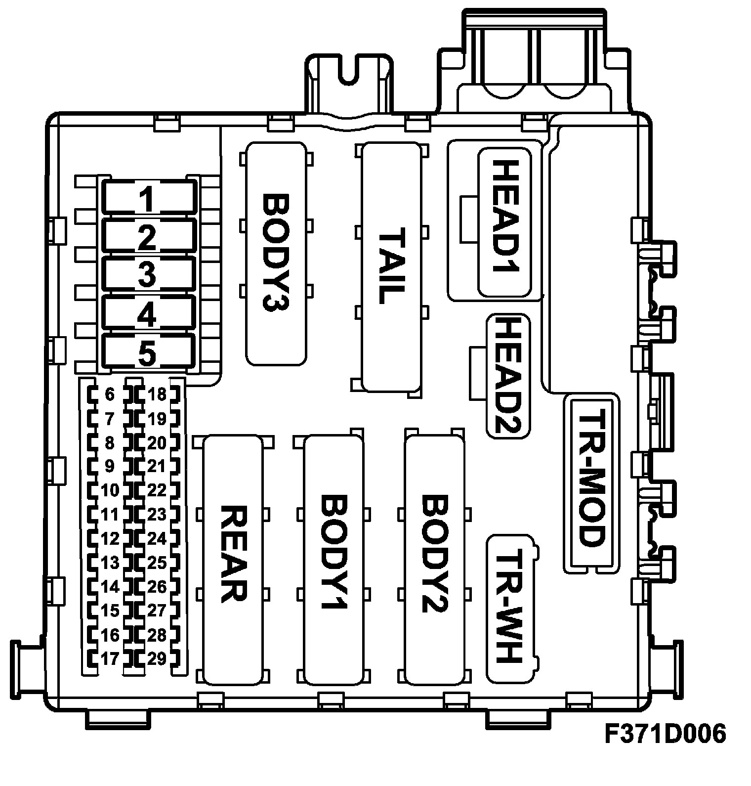 6. Rear (in diagram = R) to rear wiring harness
