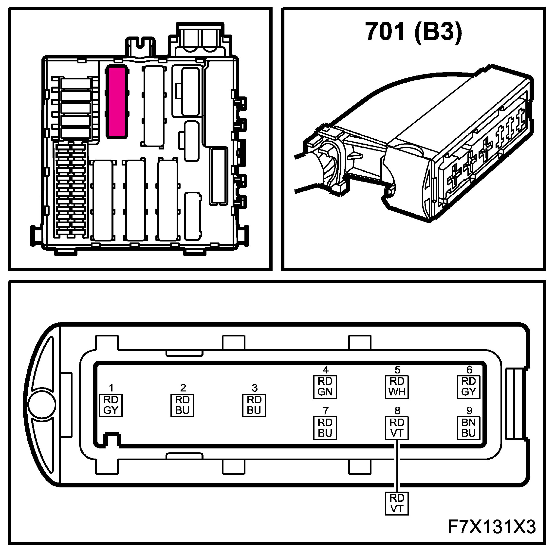 3. Body 3 (in diagram = B3) to main wiring harness
