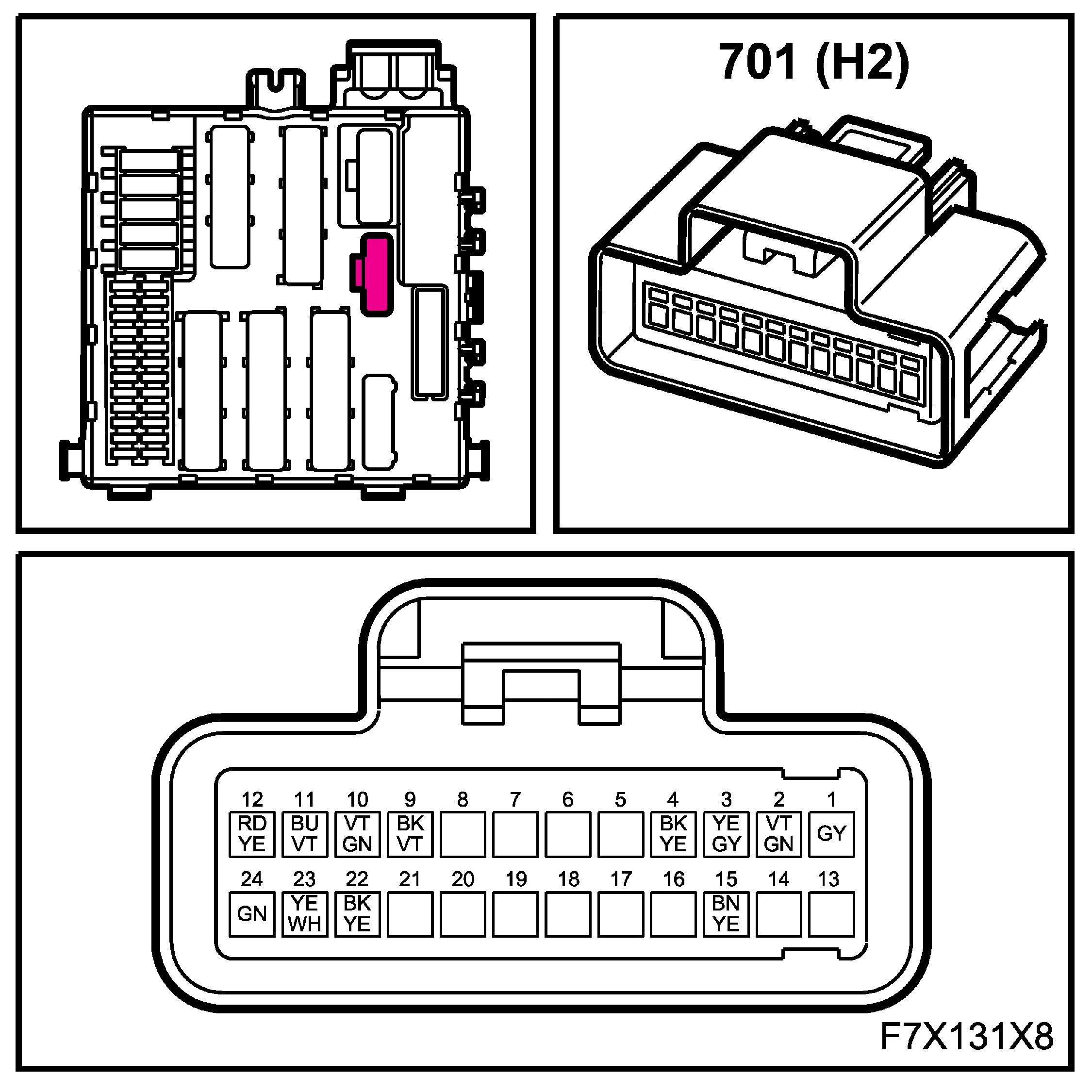 2. Body 2 (in diagram = B2) to main wiring harness