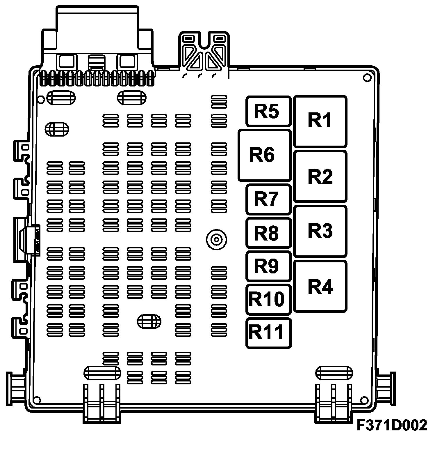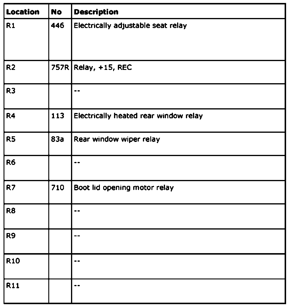 The electrical center can contain a greater number of relays than those listed below. In such cases, these are not connected to a wiring harness.