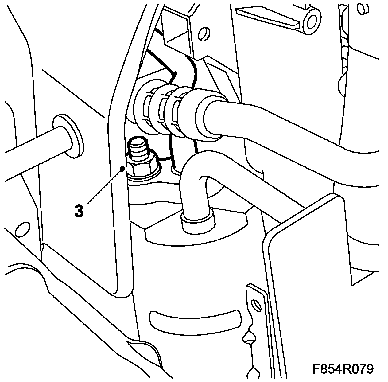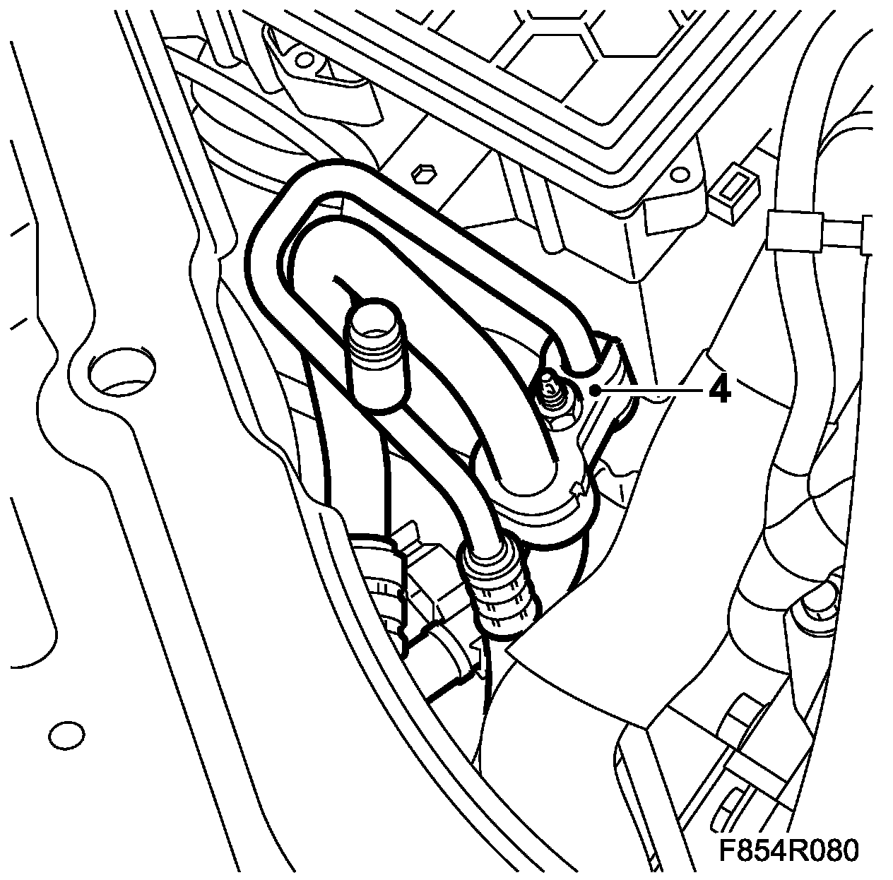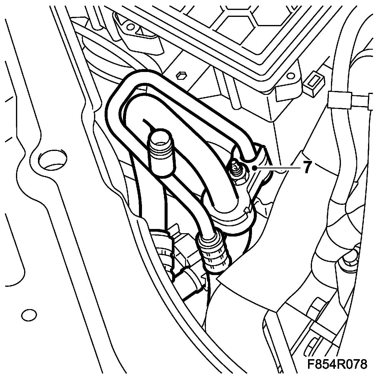 4. Fit the receiver high pressure pipe to the PAD connection on the front right structural member using a new seal.