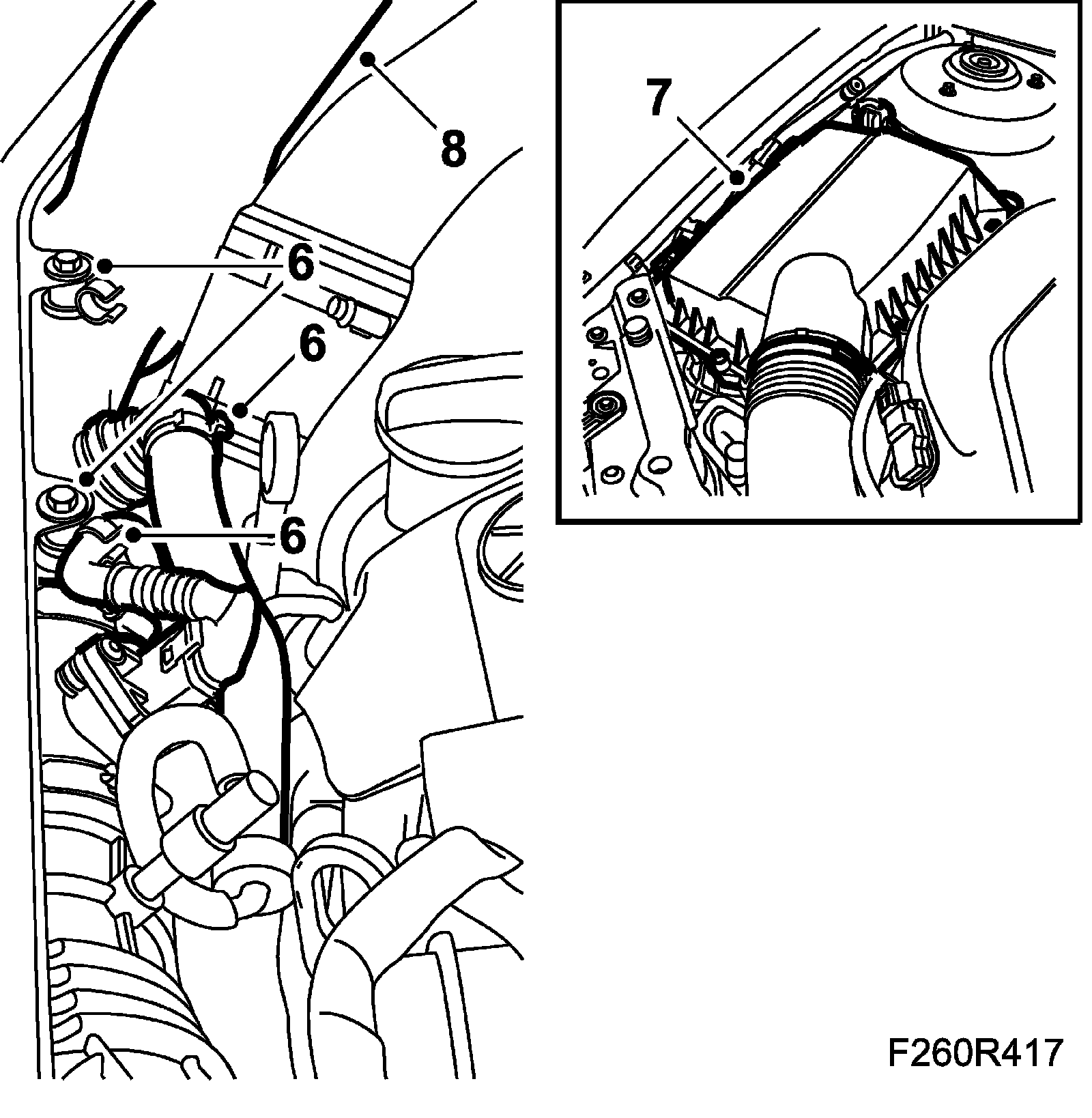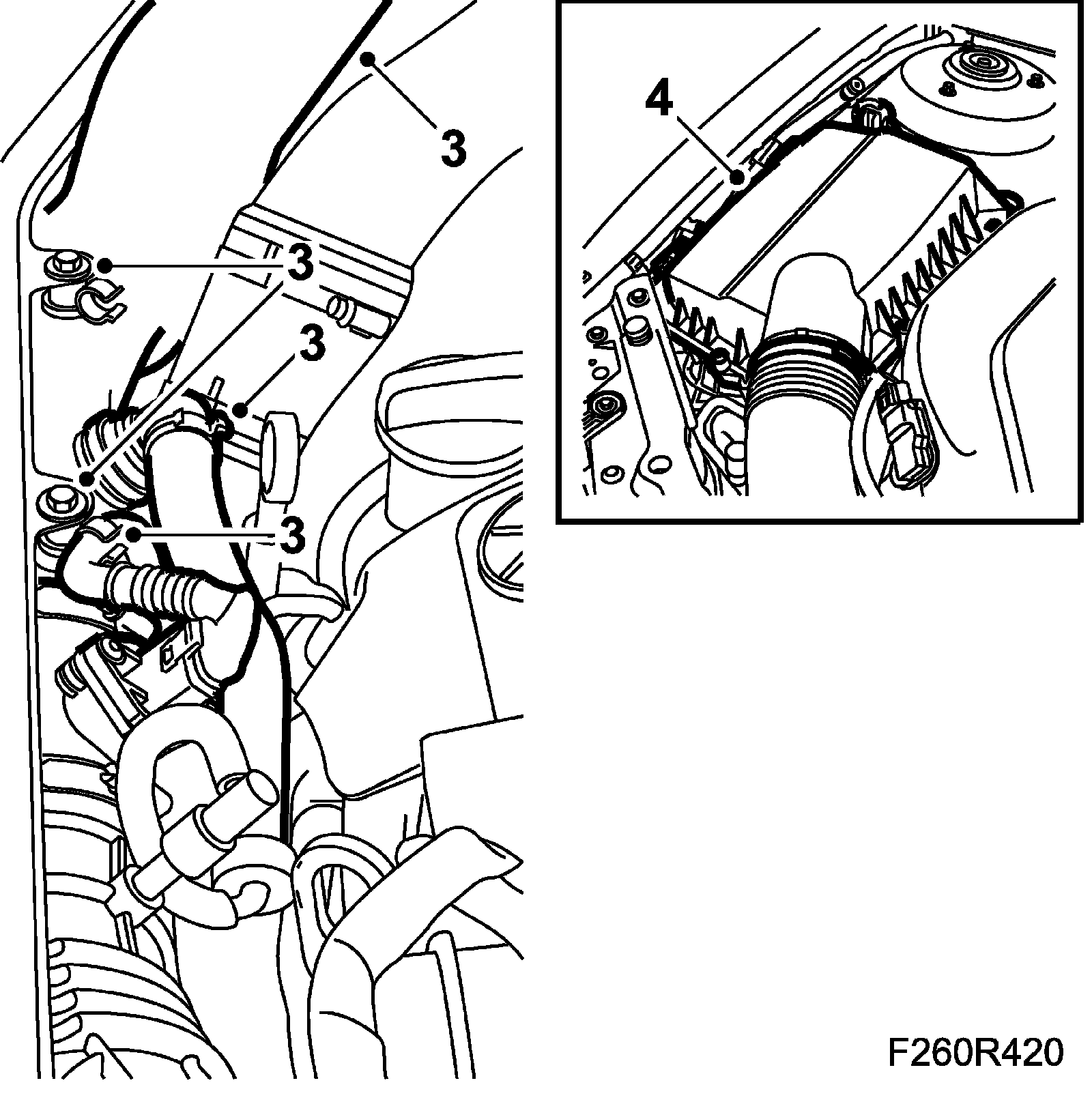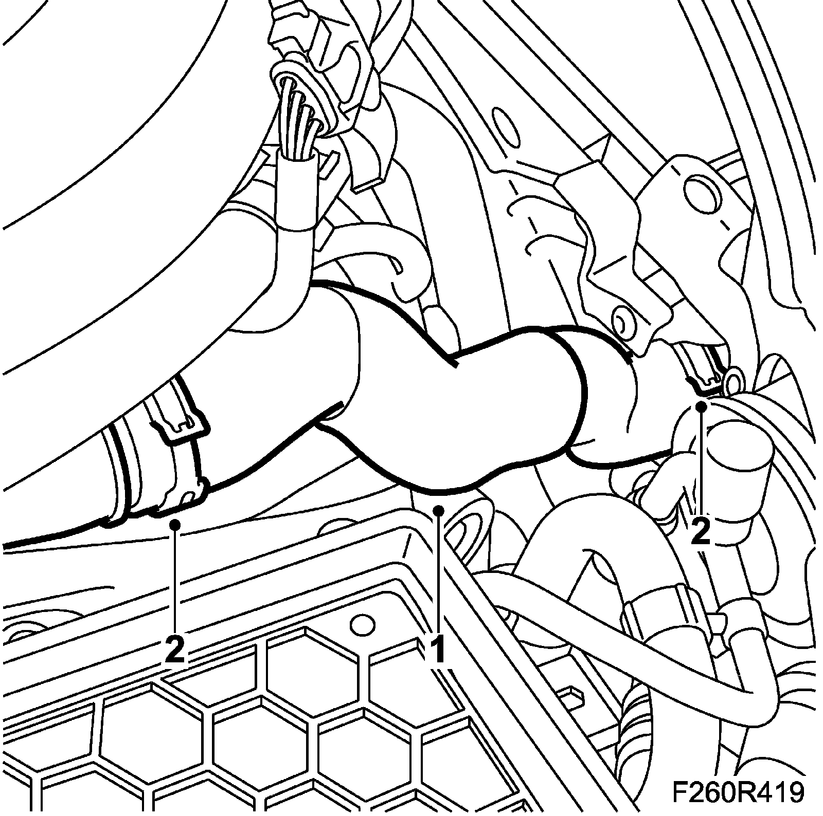 6. Remove the bolts of the turbocharger intake manifold on the radiator member, the hose clip and the pipe connection of the secondary air injection pump.