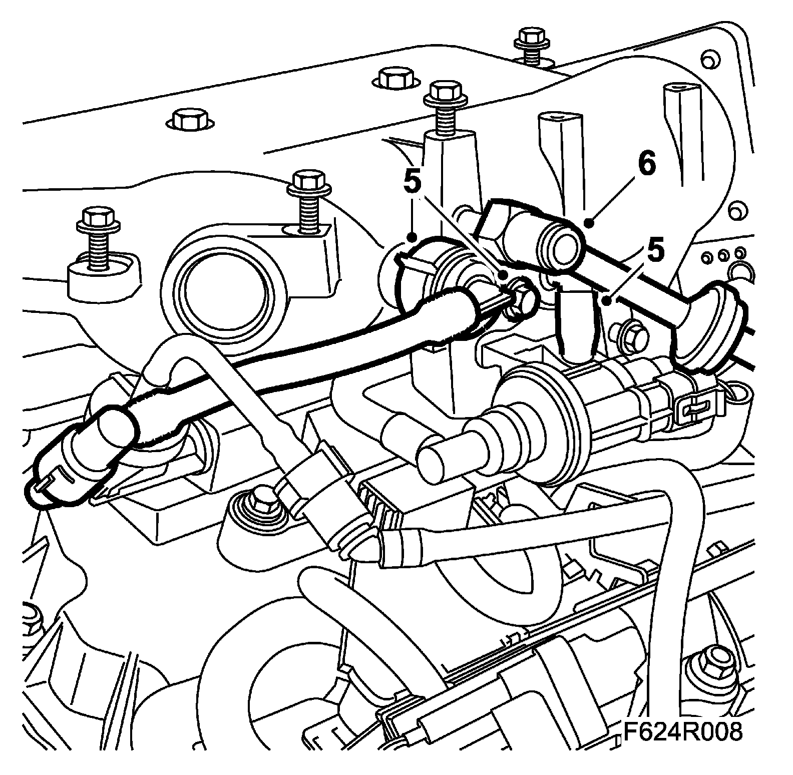 6. Attach the brake vacuum hose to the intake manifold.