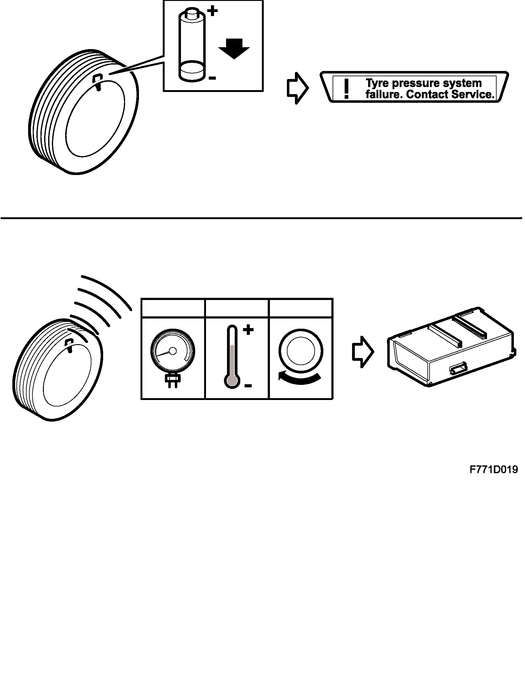 The tire pressure monitoring system can display a warning message or an alarm message for each tire. The message indicates how serious the fault is and the tire in question. A system fault message can also be displayed.