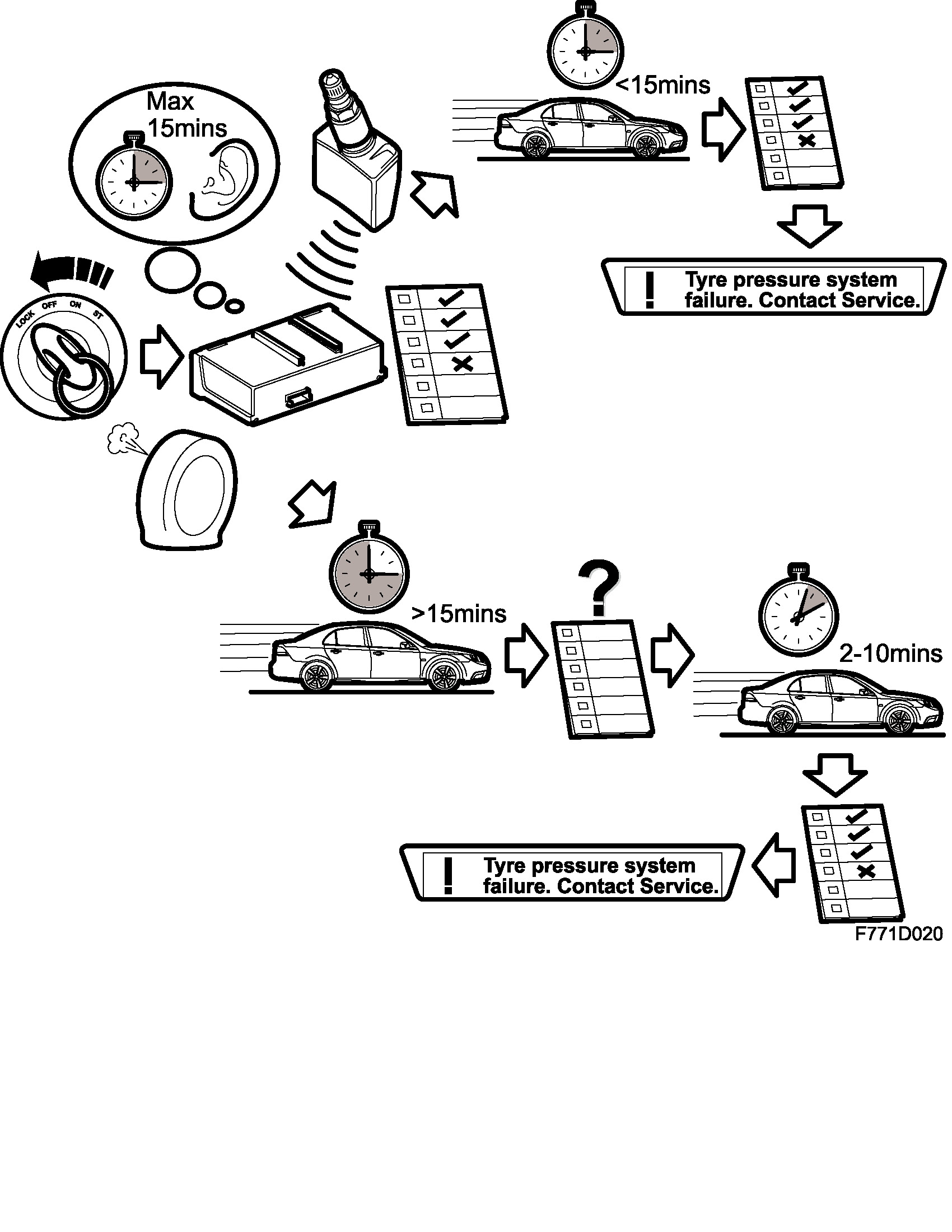 When warming up after start, the first period of the active mode is a teach-in procedure which lasts until each of the four sensors (which each have their own unique code) is identified. This communication "teaches" the control module which sensor works with each wheel. This procedure takes approximately 10 minutes. If the system cannot identify where the sensor it, it presumes that it is in the same position as it was the last time the car was driven.