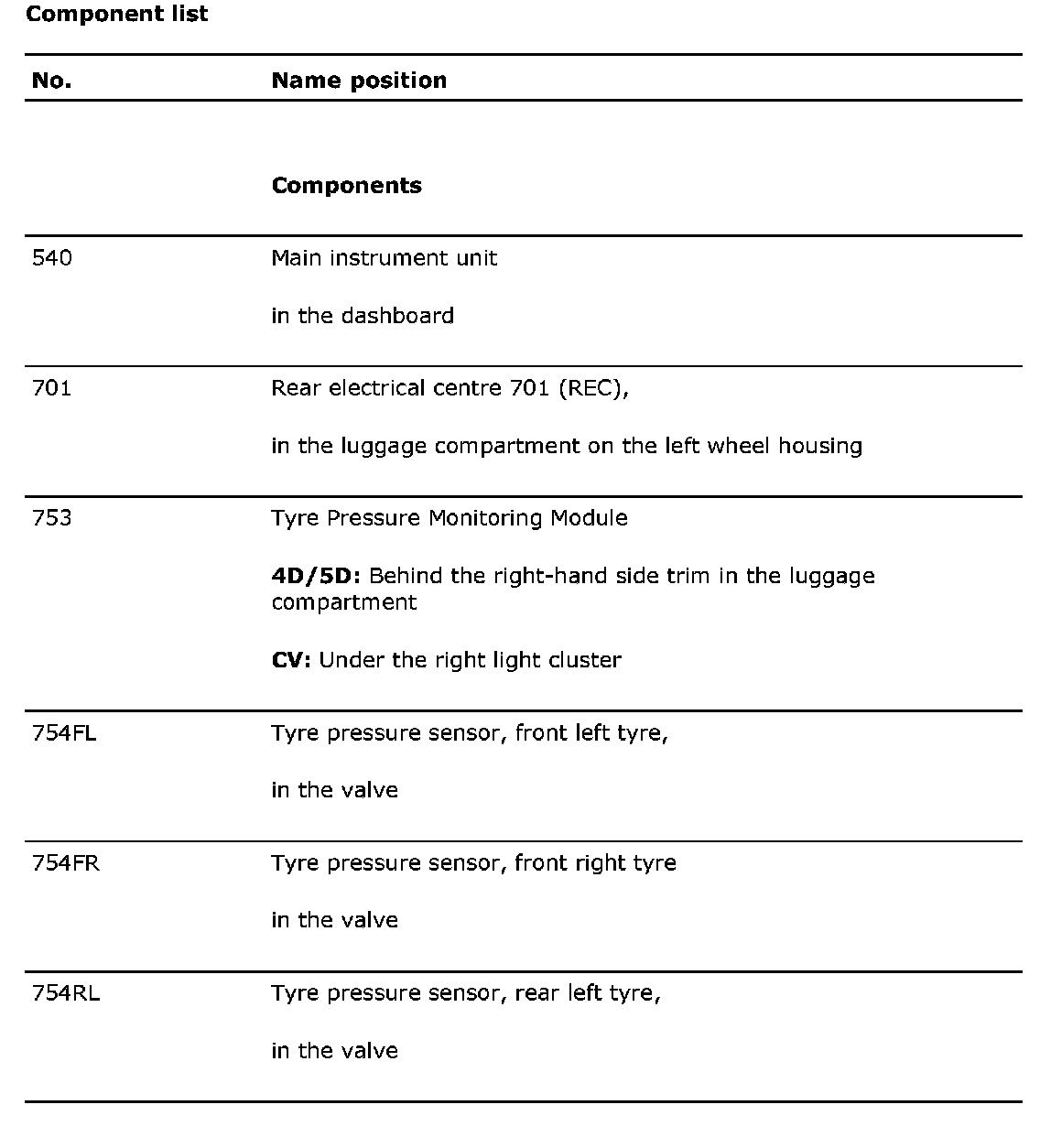 Component list