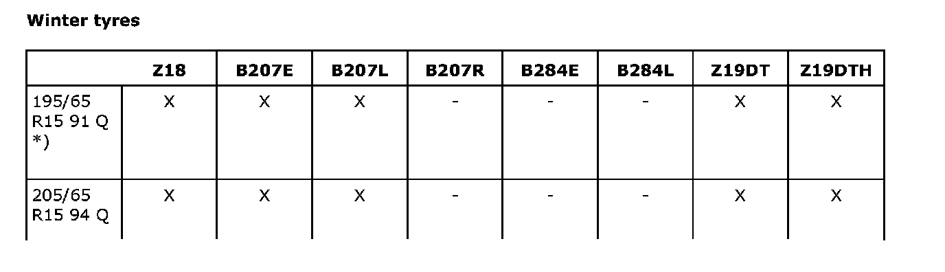The normal tire is either a 195/65 R15 91H, 215/60 R15 94H or 215/55 R16 93H.