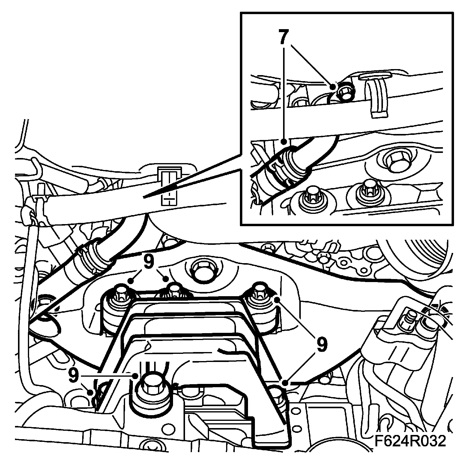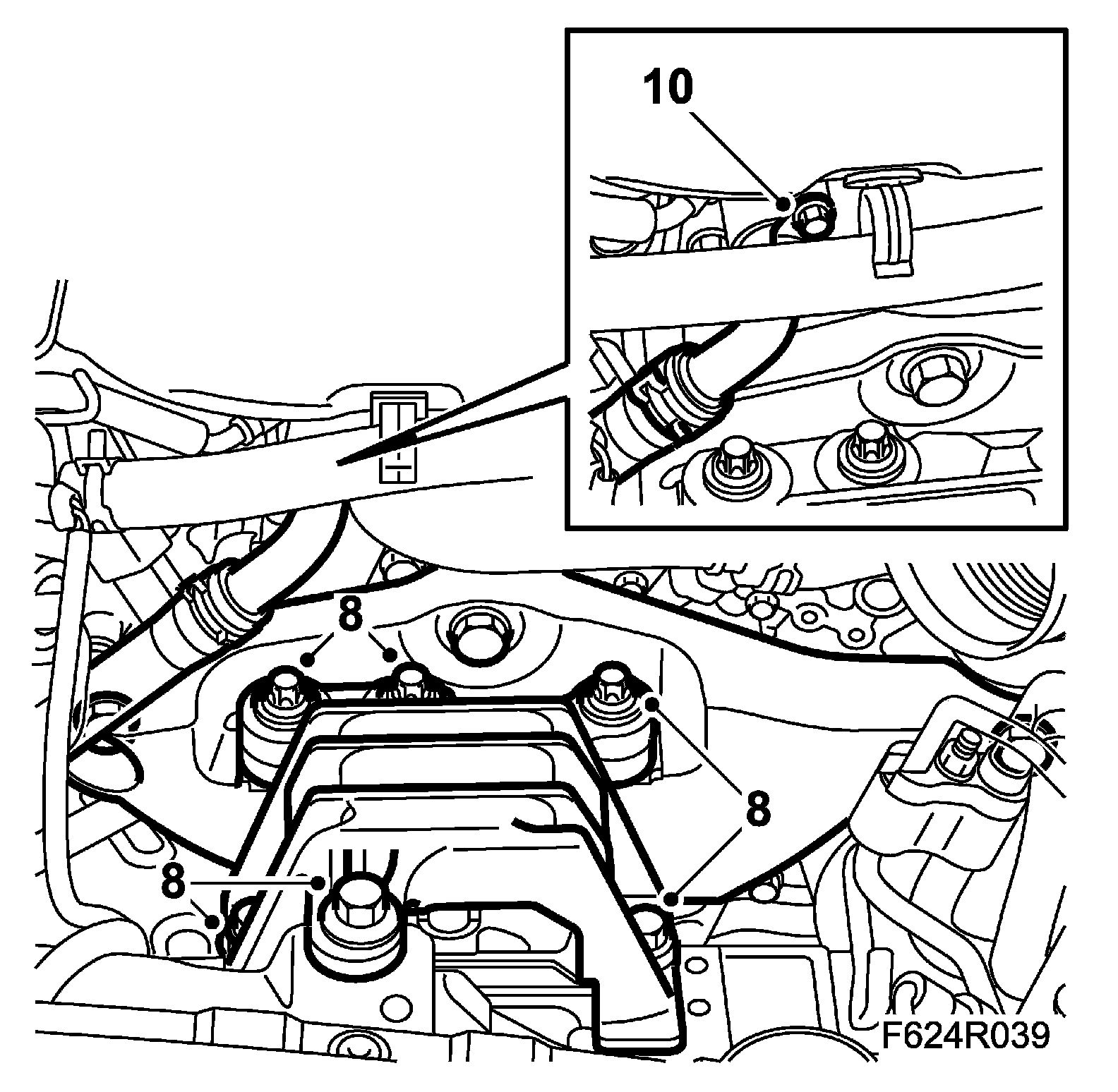 8. Position a jack under the oil sump and relieve the load on the engine mounting.