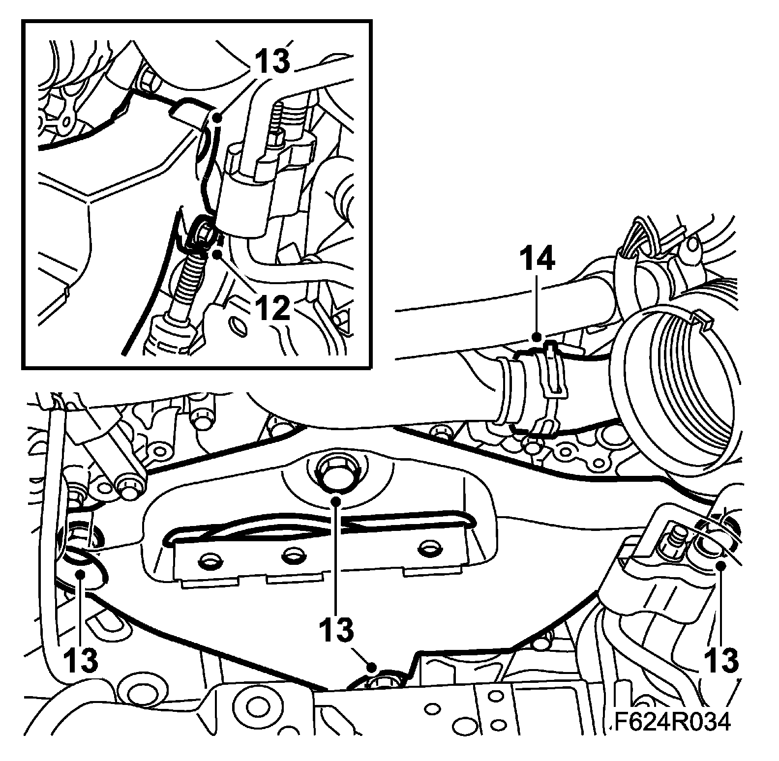 13. Remove the engine bracket.