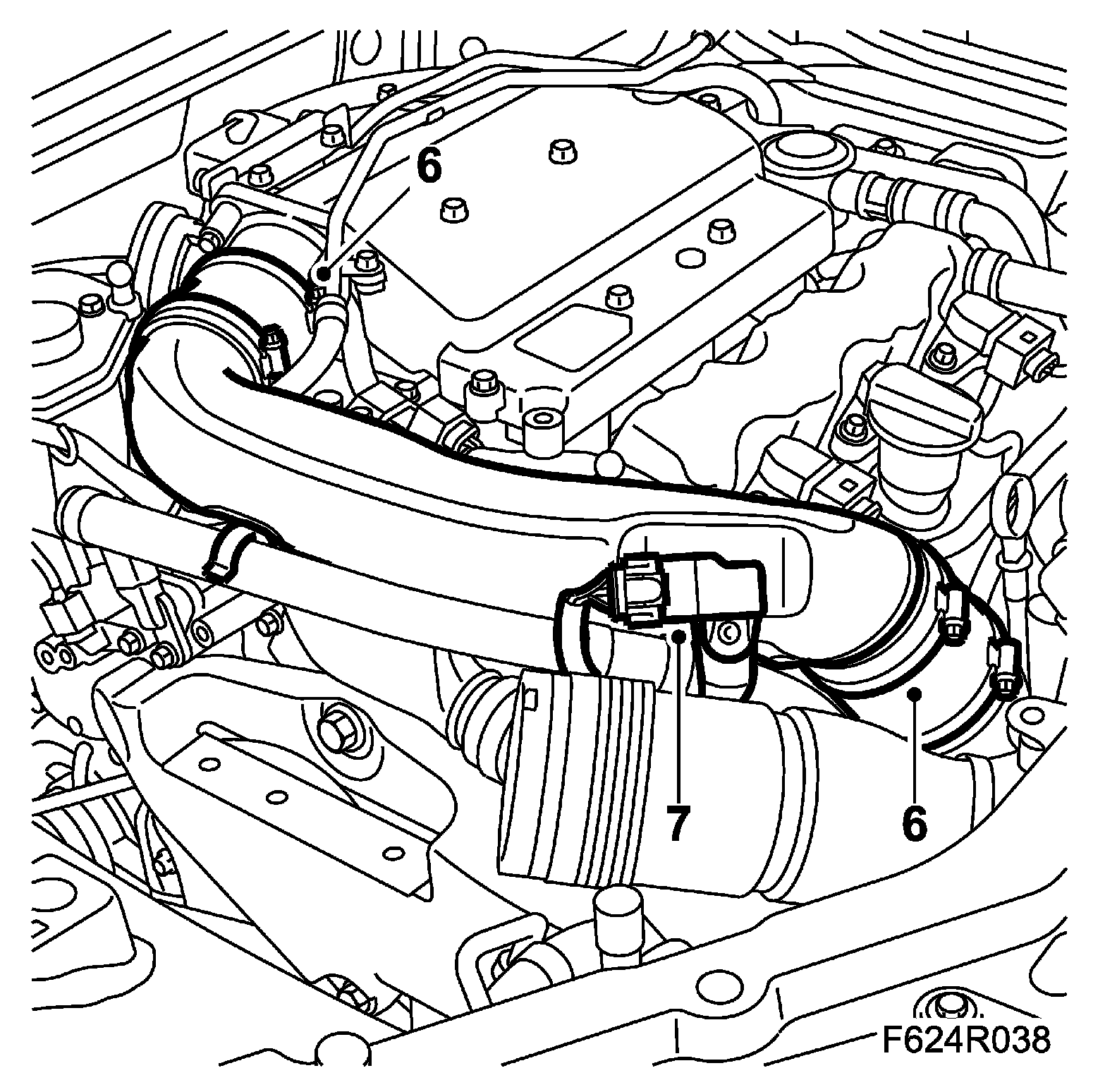 6. Fit the upper turbocharger delivery pipe to the throttle body and the lower delivery pipe.