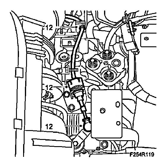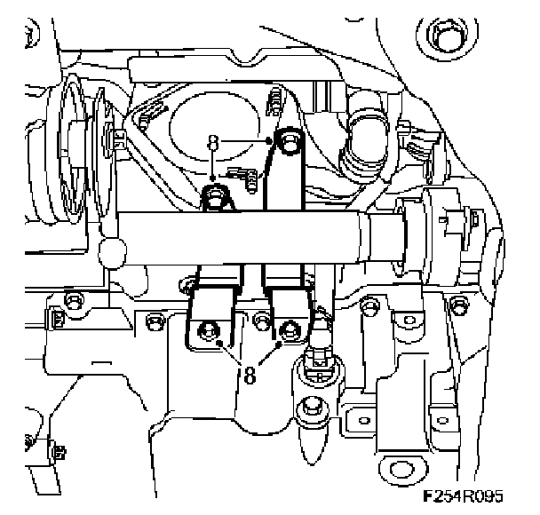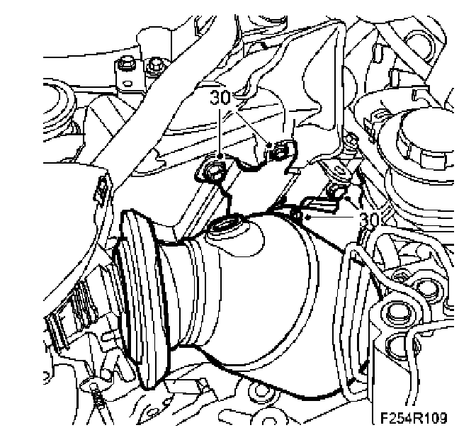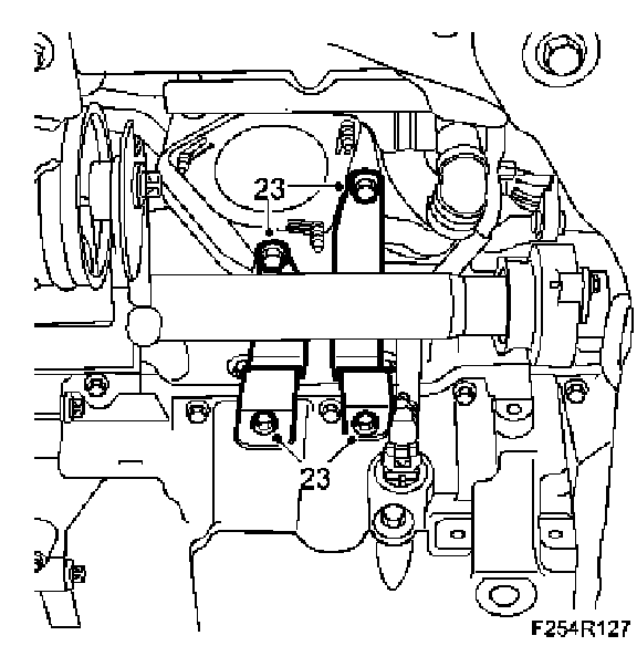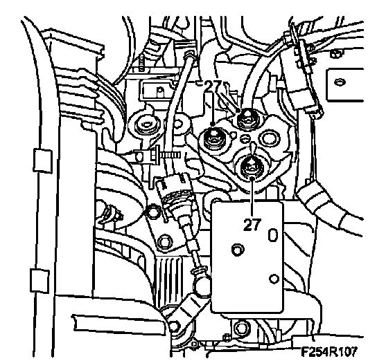 27. Mark the position of the bolts and undo the left engine mounting. Carefully release the engine down onto the subframe.