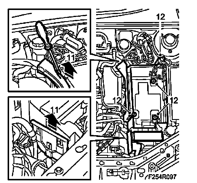 12. Unplug the bonnet switch connector and remove the battery tray.
